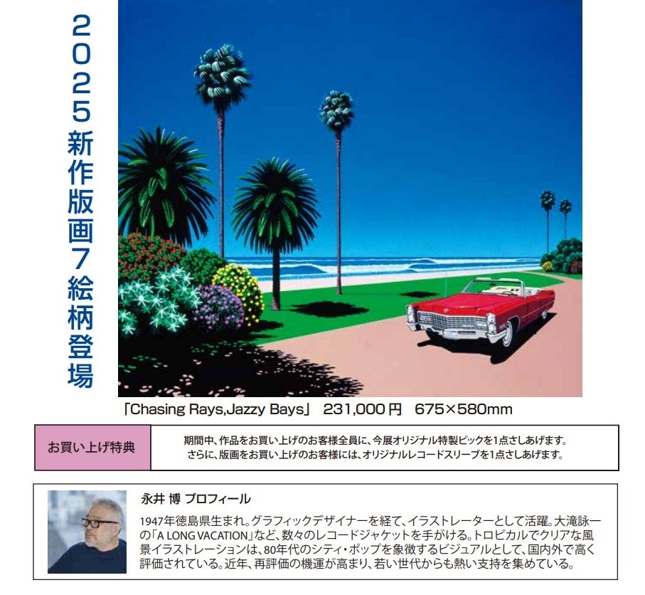 懐かしくも新しい、永井博氏のクールな世界観を存分にお楽しみくださいませ。