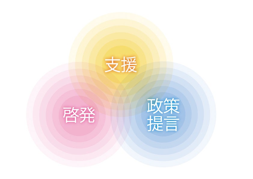 団体設立以来、課題に直接対処する「支援」、課題を知ってもらう「啓発」、課題を仕組みから解決する「政策提言」の三つの柱をもって活動を行ってきました。