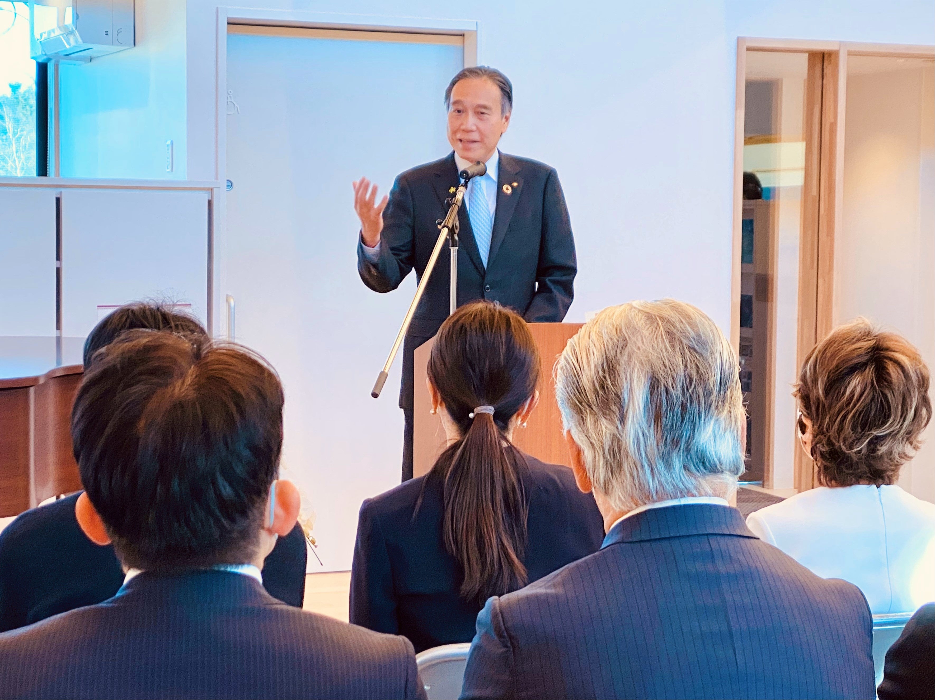 本日は「ポピンズナーサリースクール軽井沢風越」のオープン、おめでとうございます。素晴らしい教育環境によって、多くの子育て世代が集まる軽井沢町。ポピンズのような進んだエデュケアを実践する保育園を核として、長野県全体、そして全国へとこうした流れを広げていき、日本に元気を伝えていきたいと思います。施設のご発展と、世界で活躍する子どもたちがここから大勢飛び立ってくれることを祈念しております。