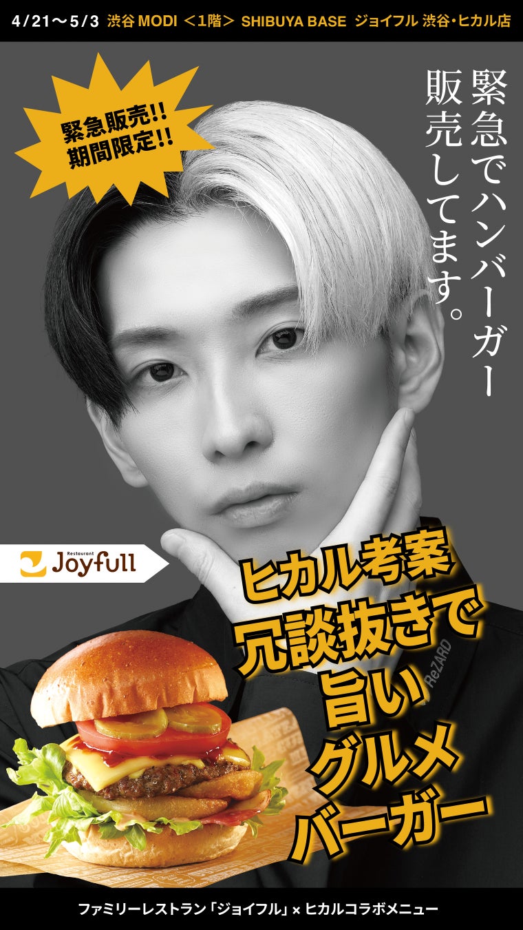 4月21日(木)から期間限定で、YouTubeのチャンネル登録者数が470万人を超える大人気カリスマクリエイター「ヒカル」さんがプロデュースする「ジョイフル 渋谷・ヒカル店」が出店します。フードスペースでは、ファミリーレストラン「ジョイフル」とのコラボプロジェクトで考案した「ヒカル考案 冗談抜きで旨いグルメバーガー」と、限定「モバイルリングフォルダー」を販売します。アパレル・雑貨スペースでは、フォトスポットを展開します。
