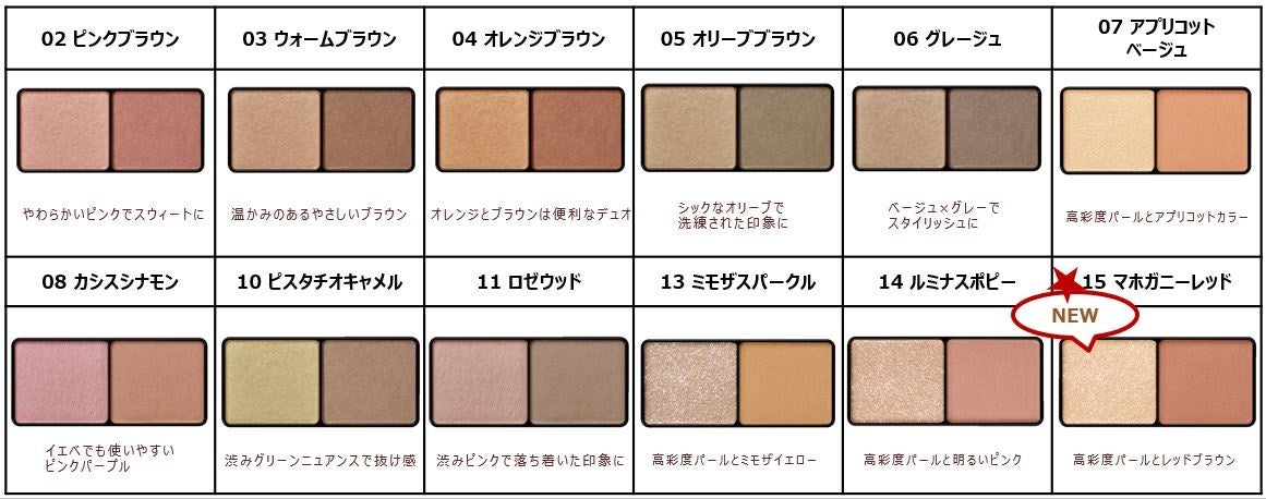 ツヤとマット 2つの質感で、目もとに深みを演出するデュオアイシャドウ うるみ血色感を演出するレッドニュアンスカラー新色登場