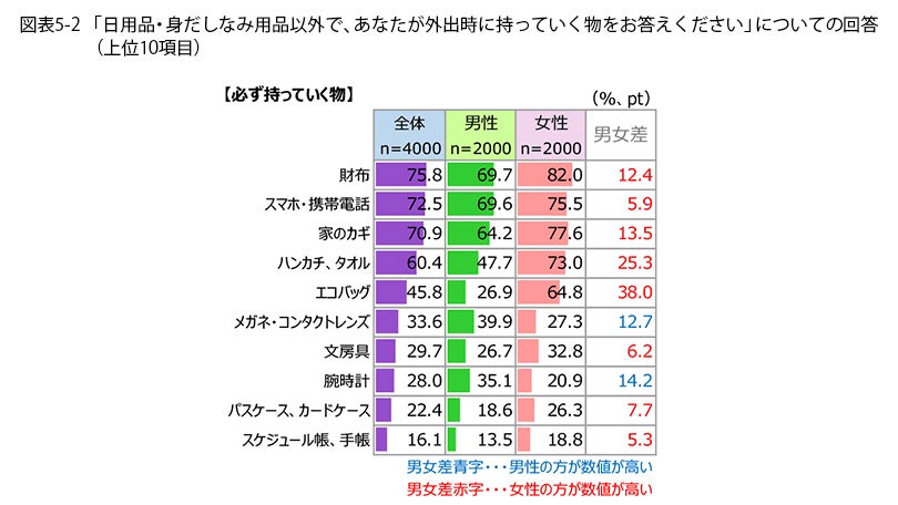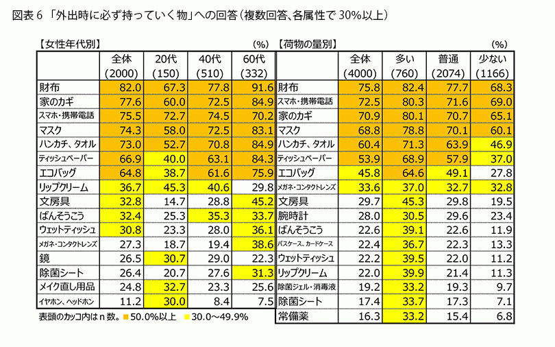- “持ち歩くアイテム数”、荷物が多い人は少ない人の倍以上!
