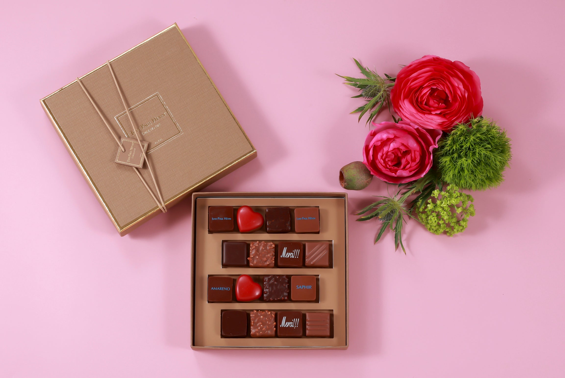 期間限定の「メルシー ノワール」と「クール レ ルージュ」を含む、ボンボン ショコラ 16個詰合せ。4個から50個の各種詰合せも