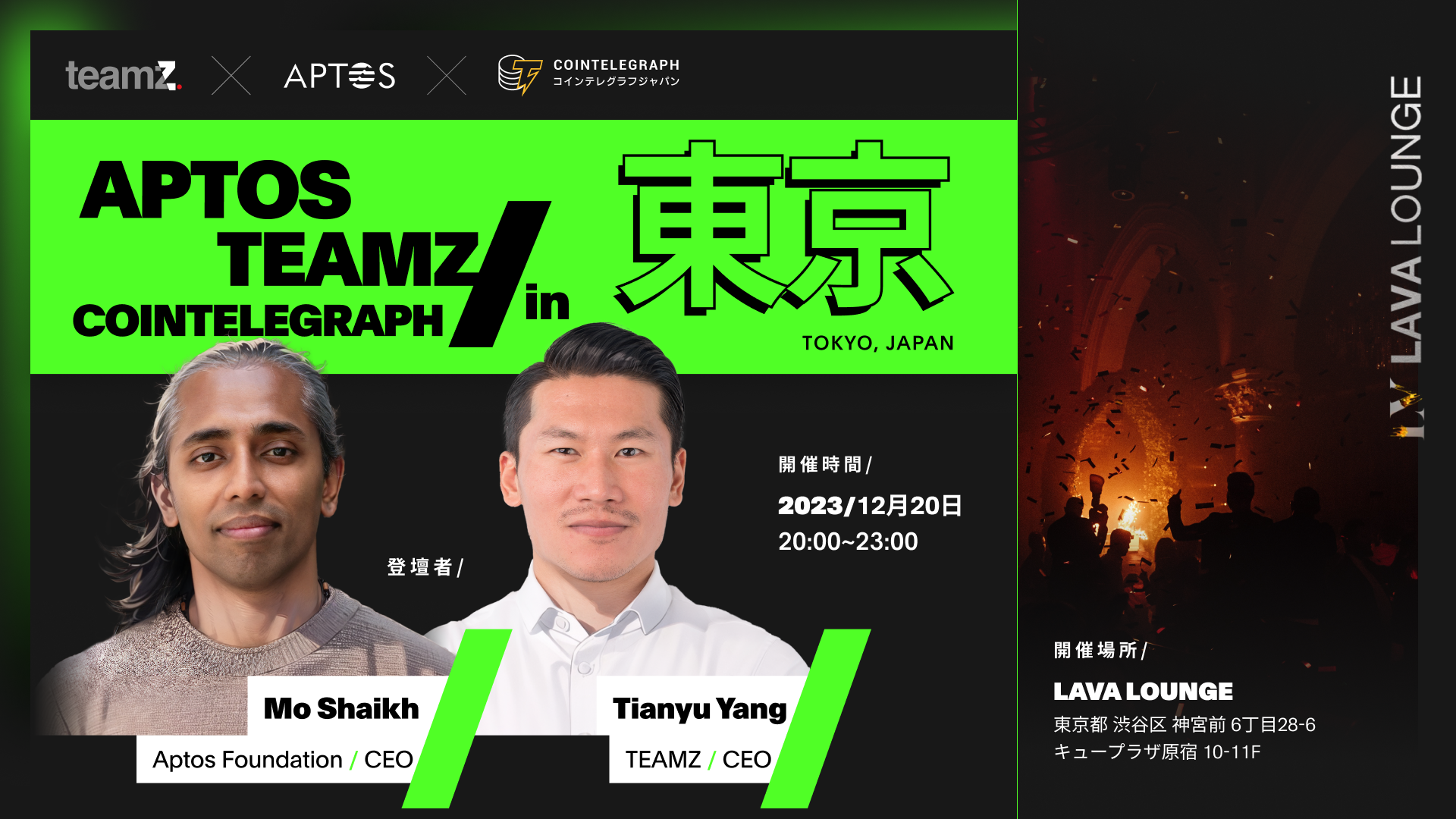 AptosとTEAMZ共同主催のイベントが12月20日にLava Loungeで開催されることをお知らせ