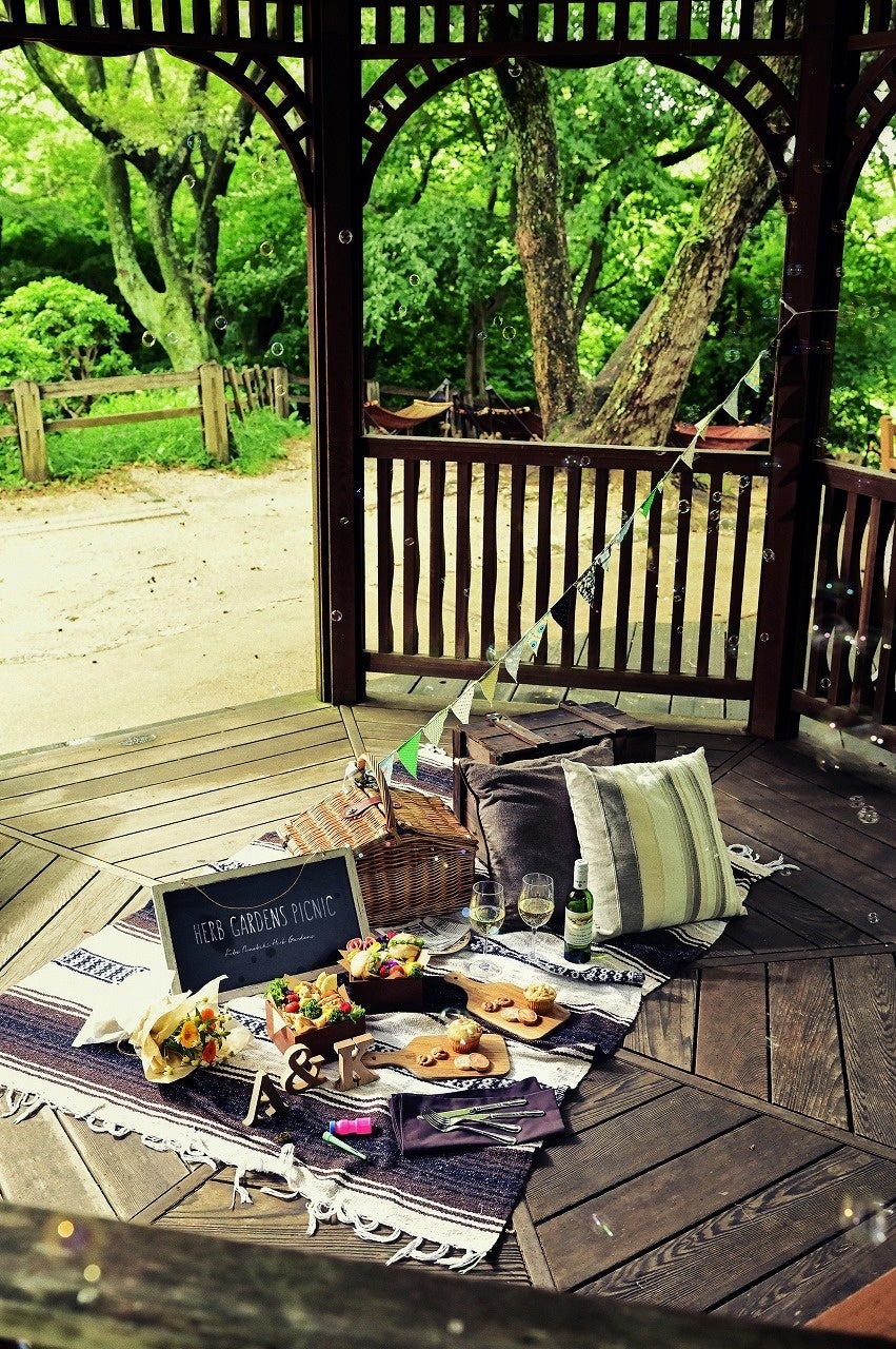 「Garden Picnic 2023」ではフードやスイーツ、ドリンク、レジャーシート、カッティングボード、カトラリーセット、ドライフラワー、ガーランド、アルファベット、黒板、シャボン玉をまとめてレンタル。手ぶらで行っても映えするおしゃれな食べ物やアイテムが揃うのはもちろんのこと、ハーブ園ならではの色彩あふれるガーデンで草花の香りや色もたっぷりと楽しんでいただけます。