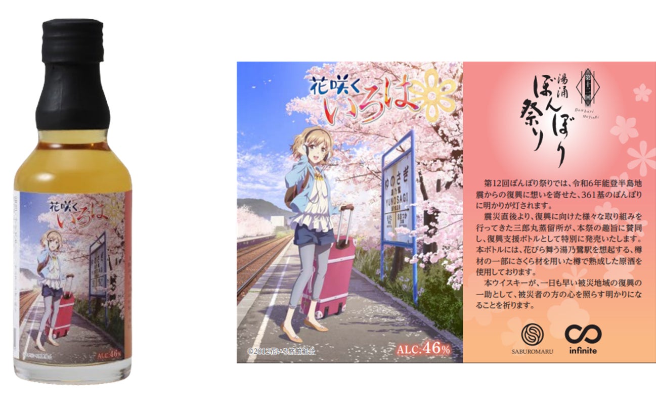 ラベルイラストは今回の地震でも一部崩落してしまった、のと鉄道西岸駅の在りし日を重ねる湯ノ鷺駅に強く立つ、松前緒花に復興への想いを込めています。本ウイスキーが、一日も早い被災地域の復興の一助として、被災者の方の心を照らす明かりになることを祈ります。
