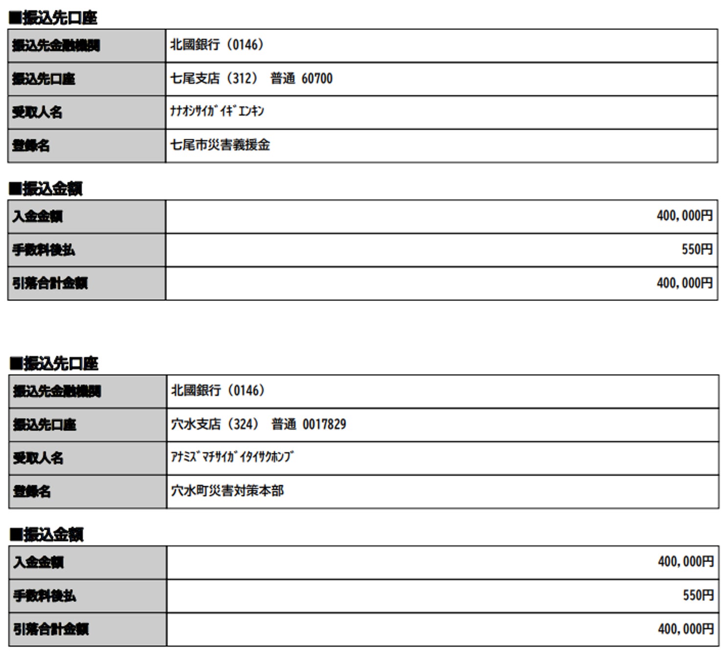 石川県七尾市災害義援金