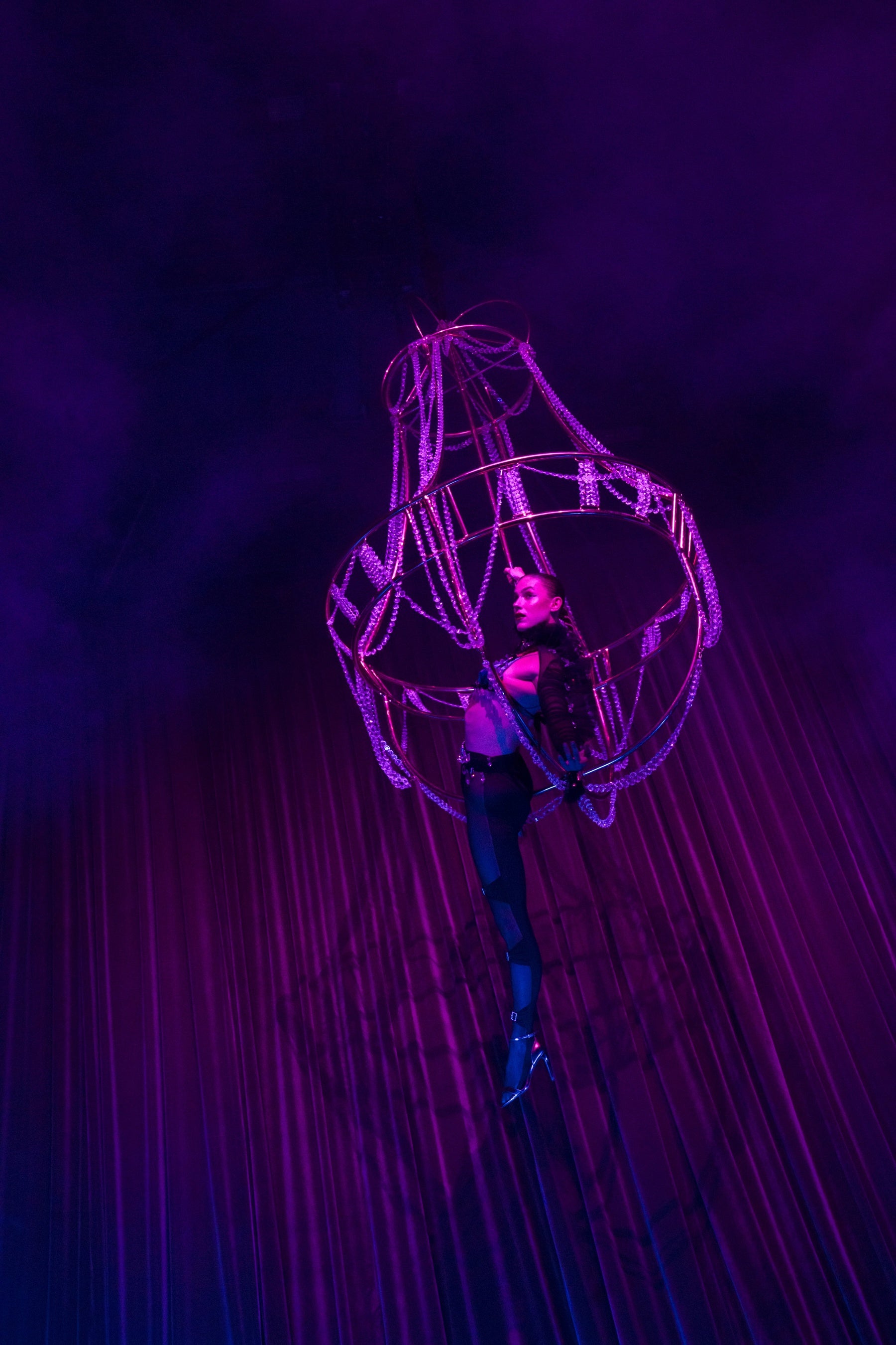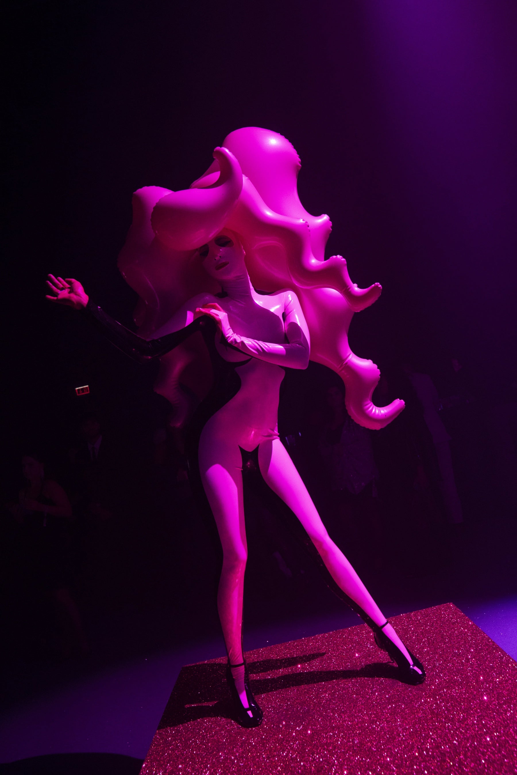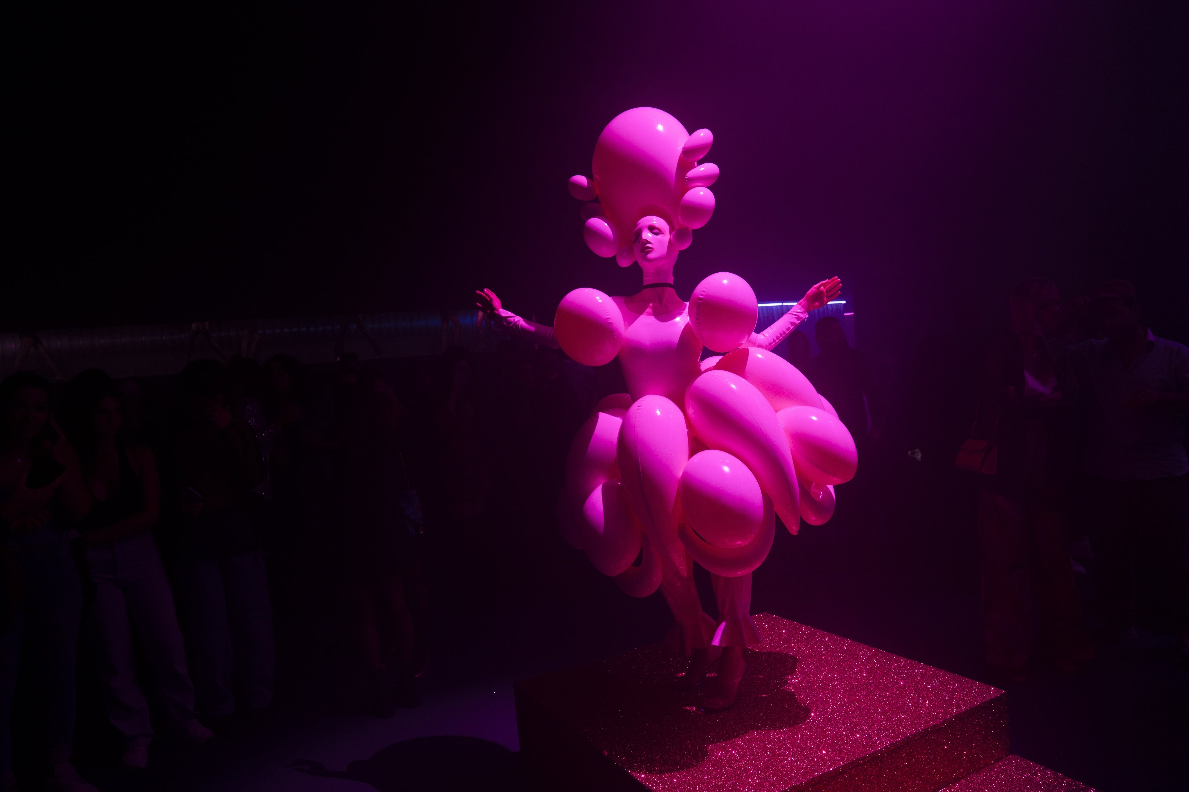 独創的なプラットフォーム・パフォーマンスを得意とするカミーユ・トレンブレイ(@cammmt)によるショーは爽快でした。そして、芸術的で想像力豊かな衣装デザイナー、サーシャ・フロロワ(@sashafro)による彫刻のような衣装でのヒストリックなヴィジョンを披露して幕を閉じました。ポールダンサーのマルティナ・ストルティ(@martinastorti__)による髪を引っ張るパフォーマンスは特に印象的で、最後はシャンデリアの明かりの下、パフォーマーのレア・トーラン・ジェンナー(@leatoranjenner)によるアクロバティックできらびやかなダンスで締めくくられました。