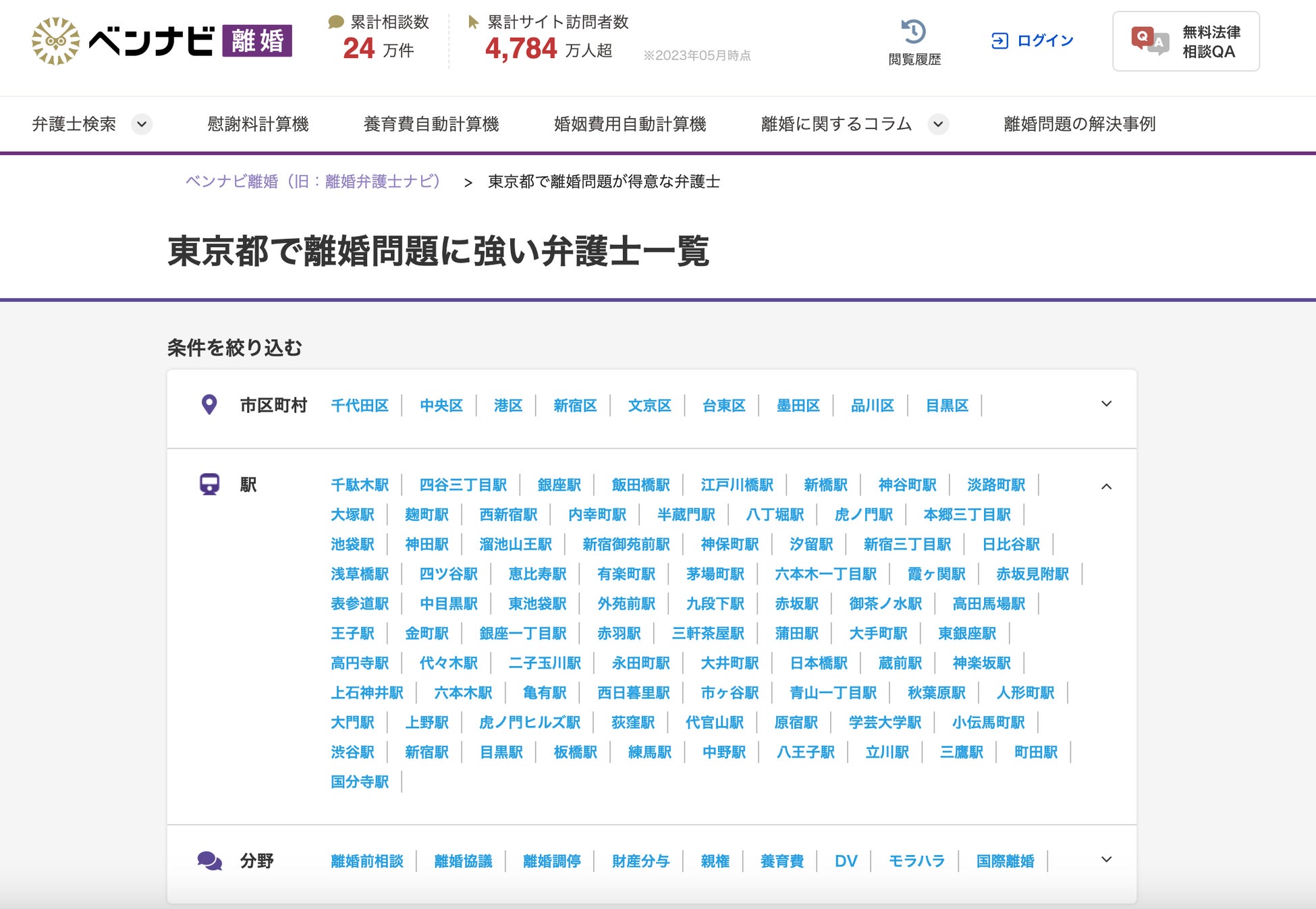【参考画像】ベンナビ離婚 東京都の法律事務所 検索項目