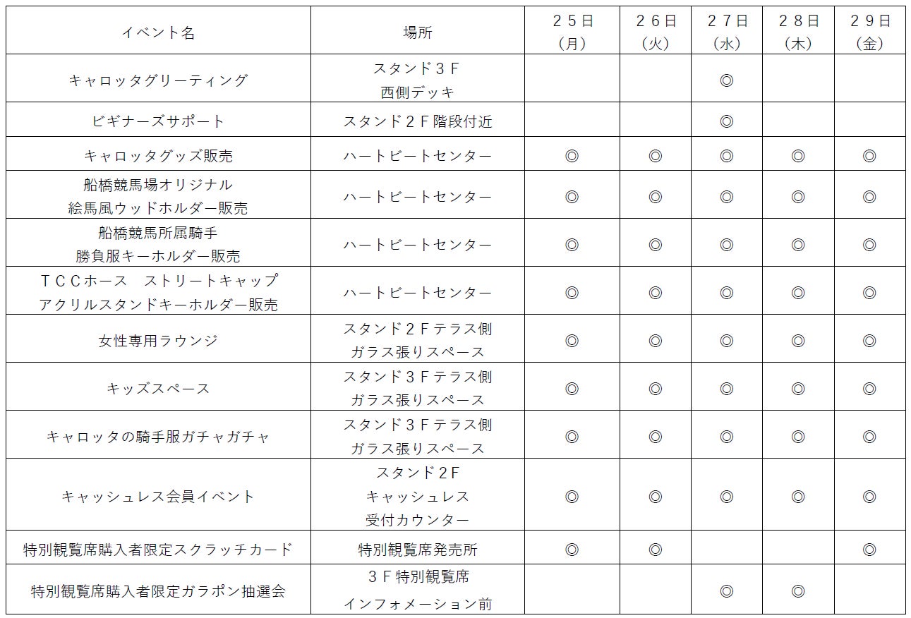 船橋ケイバ第9回開催〔11月25日(月)~11月29日(金)〕第9回は「船橋記念(SⅢ)」が開催!「キャロッタグリーティング」や「ビギナーズサポート」など、競馬ビギナーも楽しめるイベントを開催!