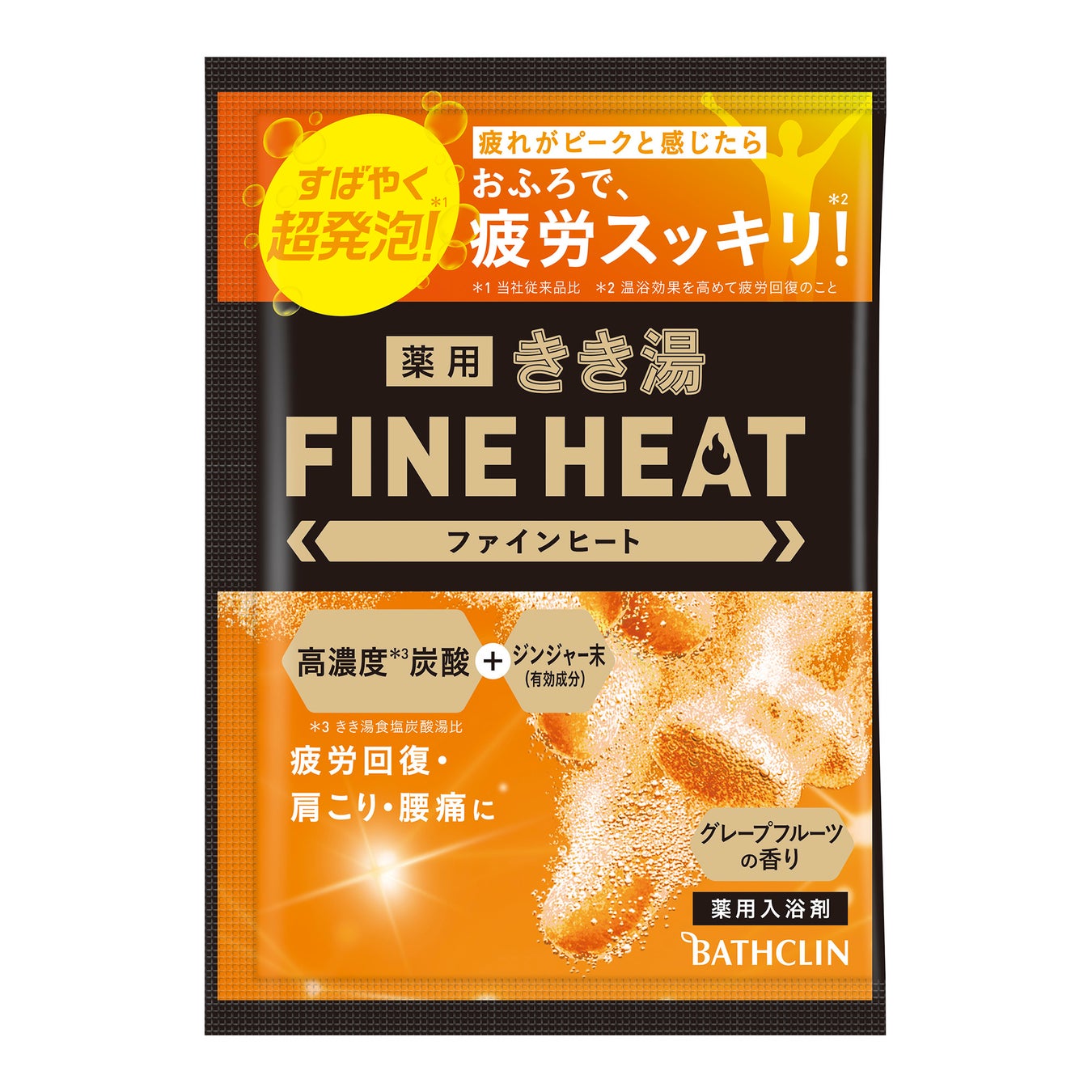 ・高濃度*3炭酸ガス、温泉ミネラル(有効成分)により、温浴効果を高めて、体の芯まで温めて効く入浴剤
