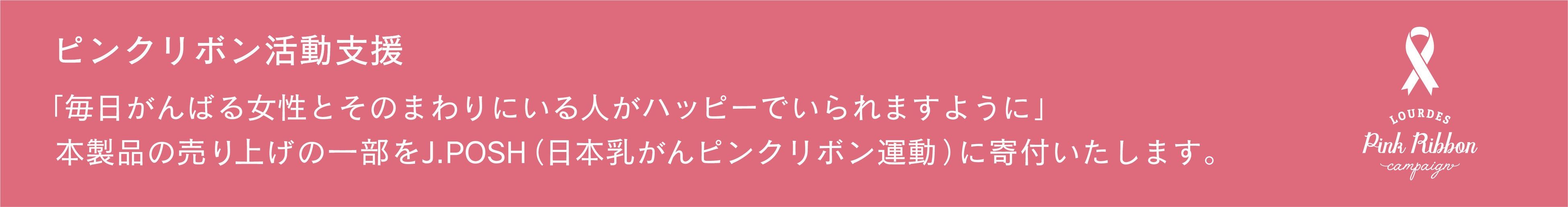 アテックスでは、ルルドブランドを通じて女性の毎日を支えるアイテムを開発・発売して参りました。売上の一部をJ.POSH(日本乳がんピンクリボン運動)へ寄付もしています。