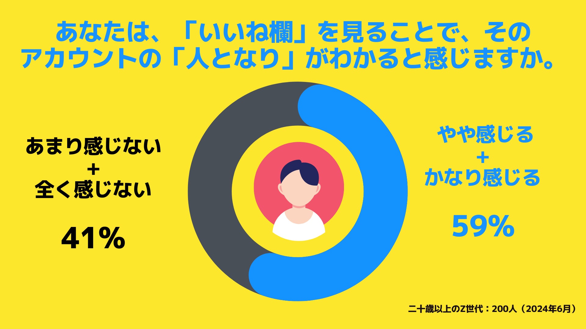 また、59%が「いいね欄」を閲覧することで、そのアカウントの「人となり」がわかると感じていたことが明らかとなりました。