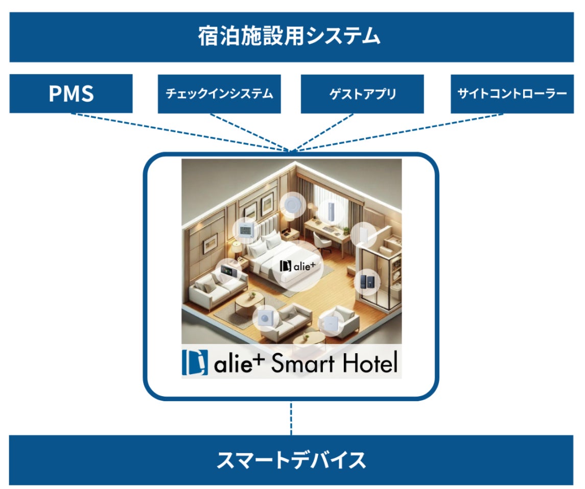 「alie+スマートホテル」は、宿泊業界の課題を解決し、ゲストの快適さを向上させるスマートホテルシステムです。