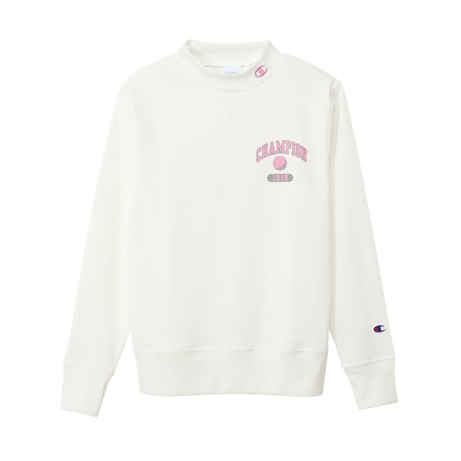 環境に配慮されたリサイクルポリエステル94%、ポリウレタン6%の生地を使用した、軽量で柔らかな肌触りのロングスリーブモックネックシャツです。畝(うね)のある表面感が特長で、襟に柔らかく、ストレスの少ない共地を使用しています。ストレッチ性、吸汗速乾、UVカット(UPF50+)など優れた機能を兼ね備えているので、暑い中でも快適にプレーができます。左胸にCロゴとChampion(チャンピオン)のコンビネーションロゴを素押ししたワッペンを付けています。同素材を使用したスカート(CW-AG205)も展開しているので、セットアップでの着用もオススメです。