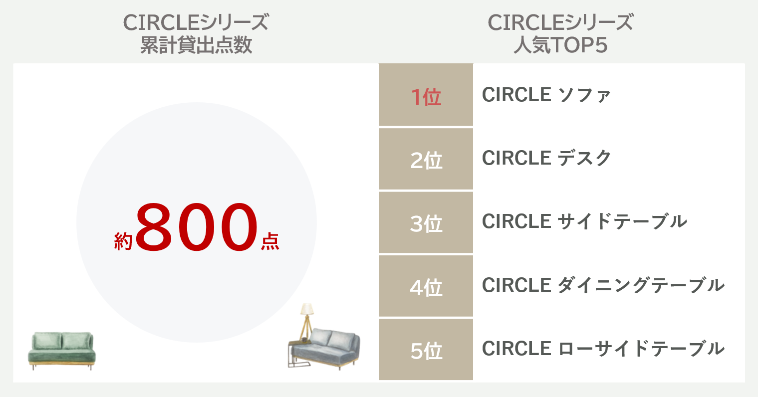 - 循環を前提とした、CLASのオリジナルPB家具「CIRCLE」シリーズ累計約800点を貸出中