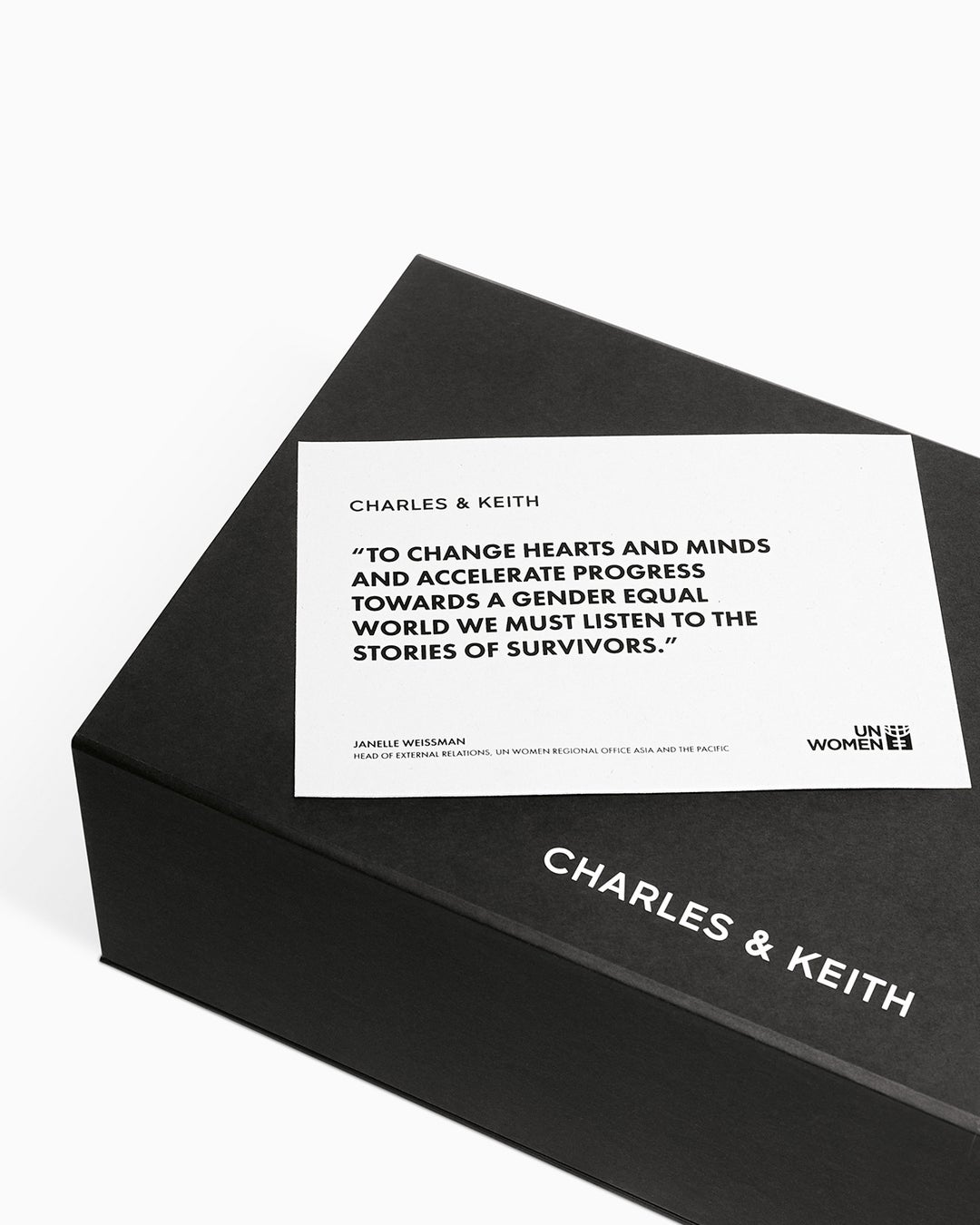 「Storytelling for Gender Equality(ジェンダー平等のためのストーリーテリング)」は、女性のエンパワーメントやジェンダー平等の達成を目的とした活動を行うNPO法人UN Women(国連女性機関)によるプログラムです。世界中の女性の多様なストーリーを発信することで、前向きな社会規範や暴力に取り組む制作を喚起し、女性に対する暴力のサバイバーが、その経験を自由に発言できる環境を整えることを目的としています。チャールズ&キースによる本プログラムへの支援活動は、昨年の国際女性デーに引き続き2回目となります。昨年の成功を受けて、今年は特別エディションのバッグの売上を通じて10万米ドルの寄付を約束しています。