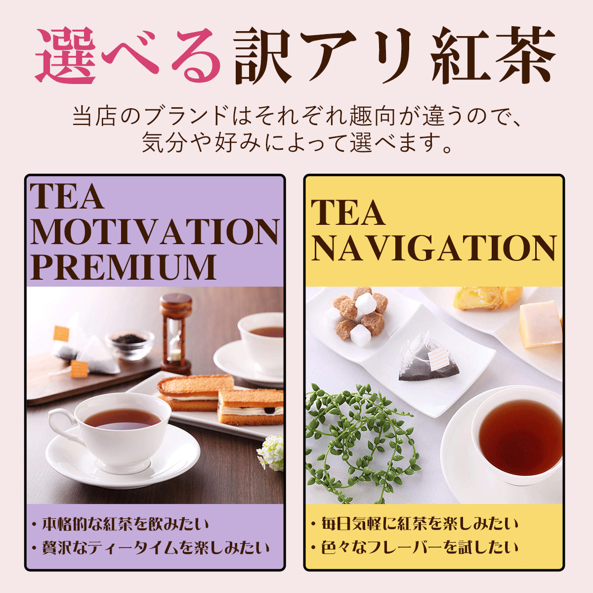 訳アリ紅茶はTEA MOTIVATION PREMIUMとTEA NAVIGATIONからお選びいただけます。
