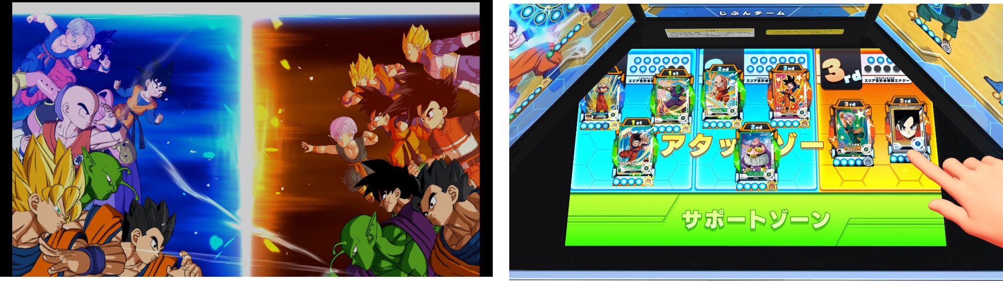 「ドラゴンボールの世界に飛び込め!」をテーマに、「没入感」と「臨場感」を重視した、究極のデジタルカードゲームです。 日本全国のアミューズメントコーナーにて展開。1プレイ 100円で遊ぶことができます。(100円ごとに必ずカードが1枚払い出されます。) 巨大な 3 面モニターと 1 つのタッチパネルの計4枚のモニターがユーザーを囲むように配置されたマシンで、『ドラゴンボール』の世界に”ダイブ”したような、臨場感あふれるプレイを楽しむことができます。カードの効果を元にデッキを構築する緻密な戦略性もありつつ、操作性は直感でプレイできるシンプルさを兼ね備えたゲームです。