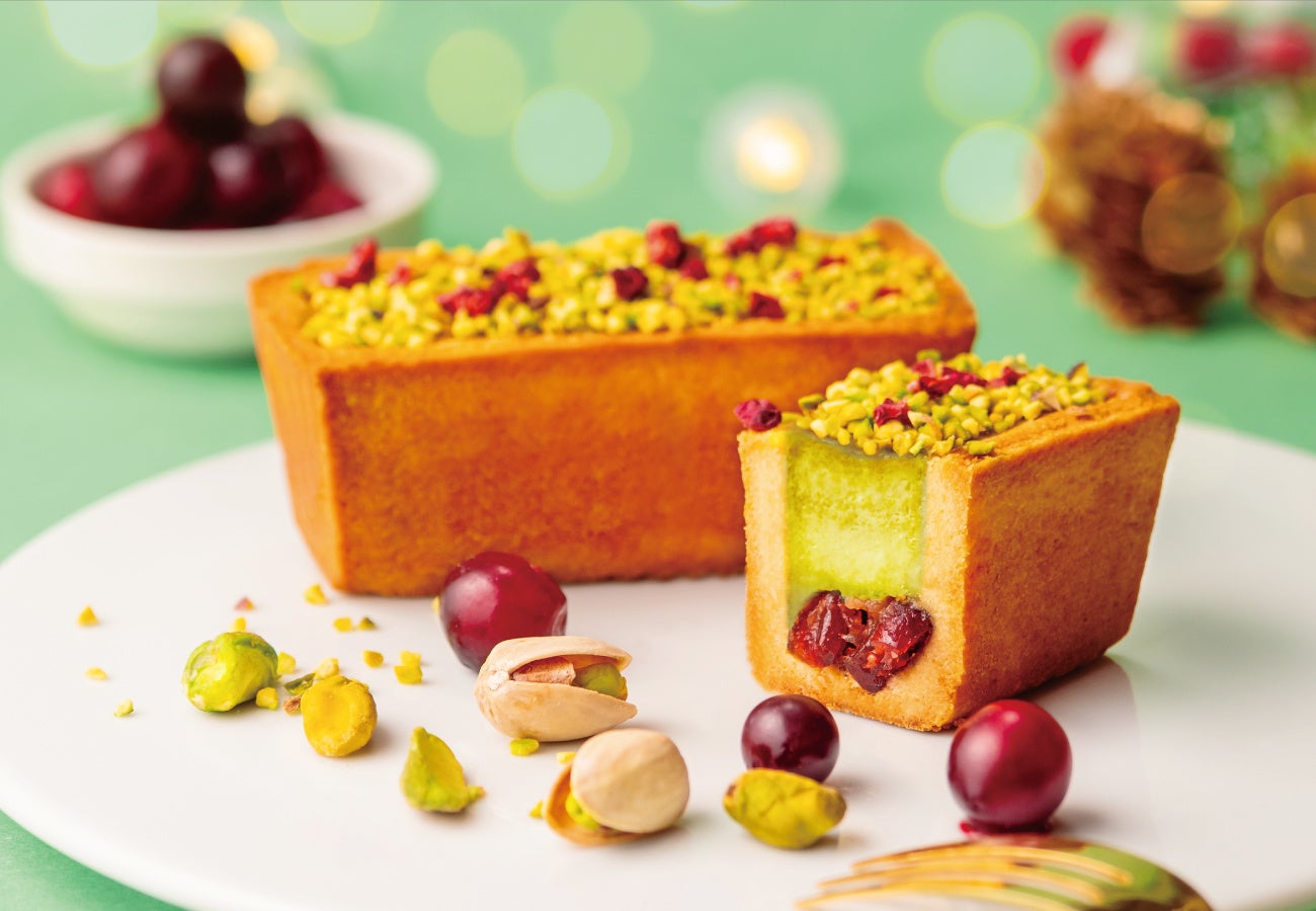 濃厚なピスタチオの香ばしさに、クランベリーの鮮やかな酸味を重ねた、季節限定の一品。