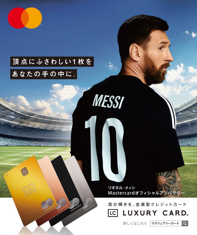 Mastercard®最上位カード「World Elite™ Mastercard®」を採用、日本初の縦型金属カードを発行するLUXURY CARD(Black Card I株式会社: 代表取締役CEO 菊地 望/以下、ラグジュアリーカード)は、Mastercardの協力のもと、Mastercardグローバル・サッカー・アンバサダーであるリオネル・メッシ選手を起用した新たな広告展開を2025年6月よりスタートいたしました。