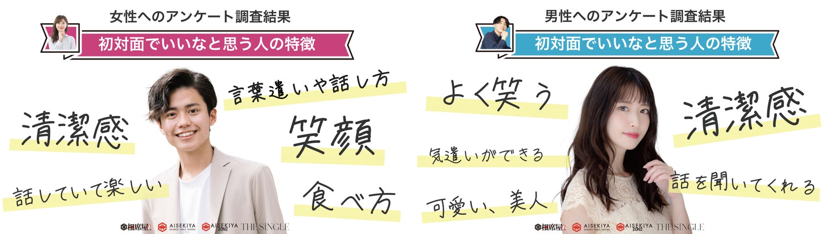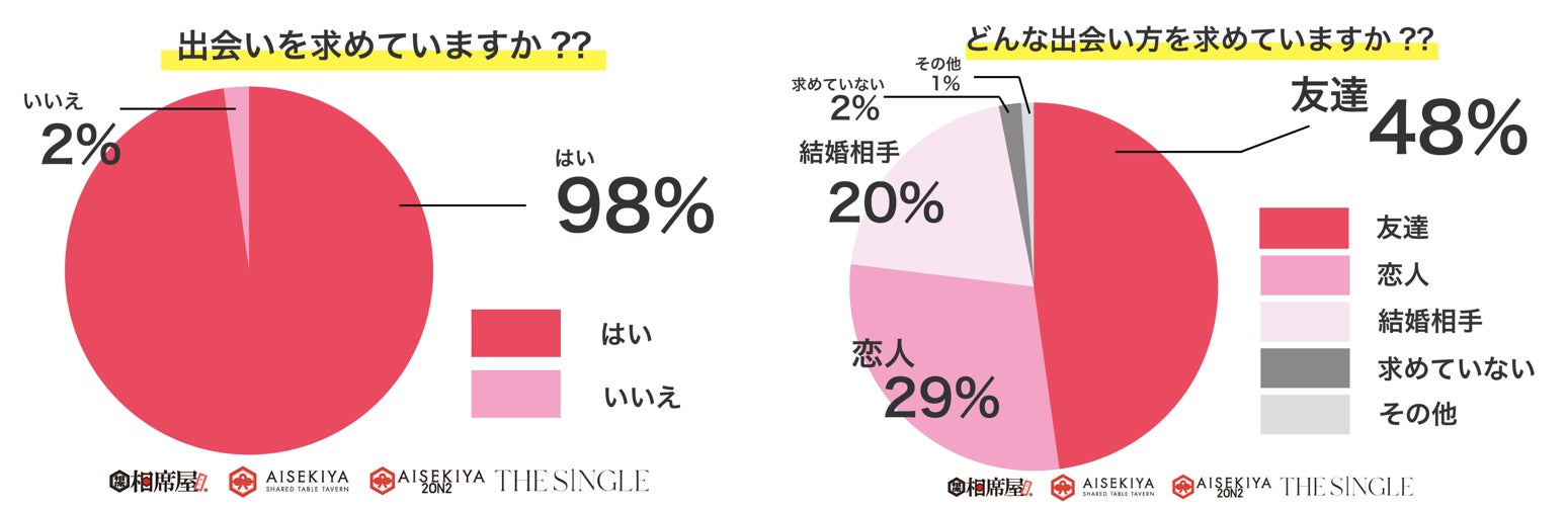 株式会社セクションエイト(本社:東京都渋谷区、代表取締役社長:安田 隆之、以下セクションエイト)はセクションエイトが運営する相席屋、AISEKIYA 2ON2、THE SINGLEは社会人男女1,162名を対象に恋愛に関する意識調査を実施いたしました。また、アンケート結果から見えたコロナ禍において男女が求める出会いやデートの仕方についての分析結果を発表いたします。