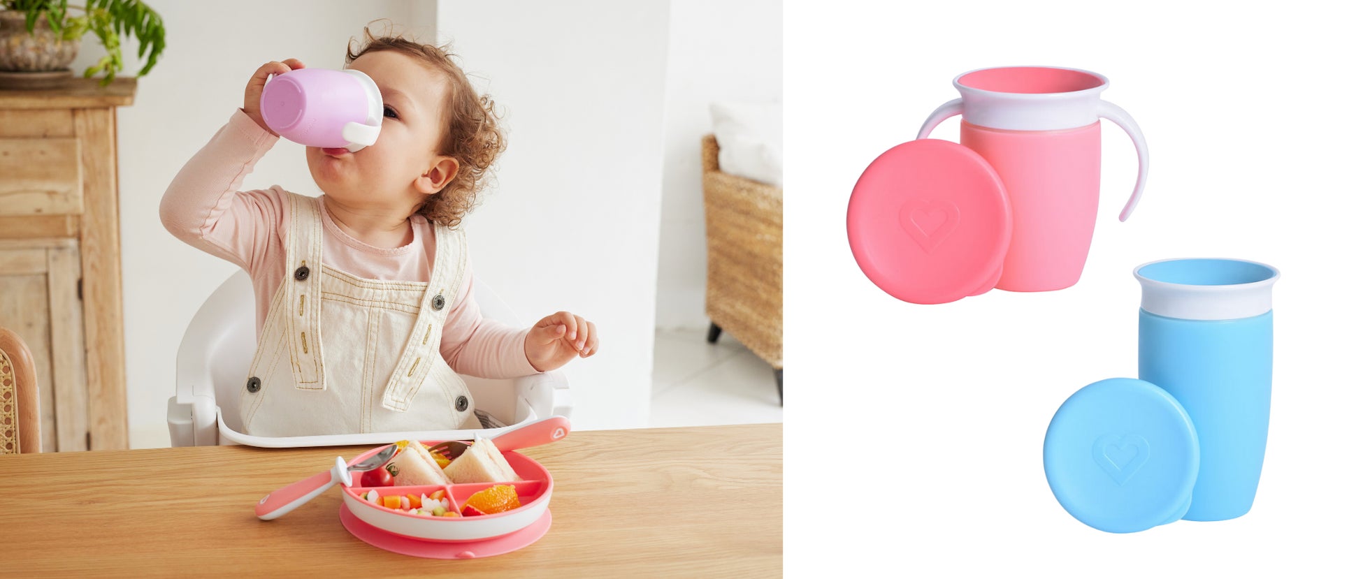「マンチキンのミラクルカップがおすすめです。 とてもこぼれにくいのでママの心にも優しい…笑 支えは必要でしたが、支えも成長してチカラがついてきたら自然に自分だけで持ち上げて飲むようになりました。」