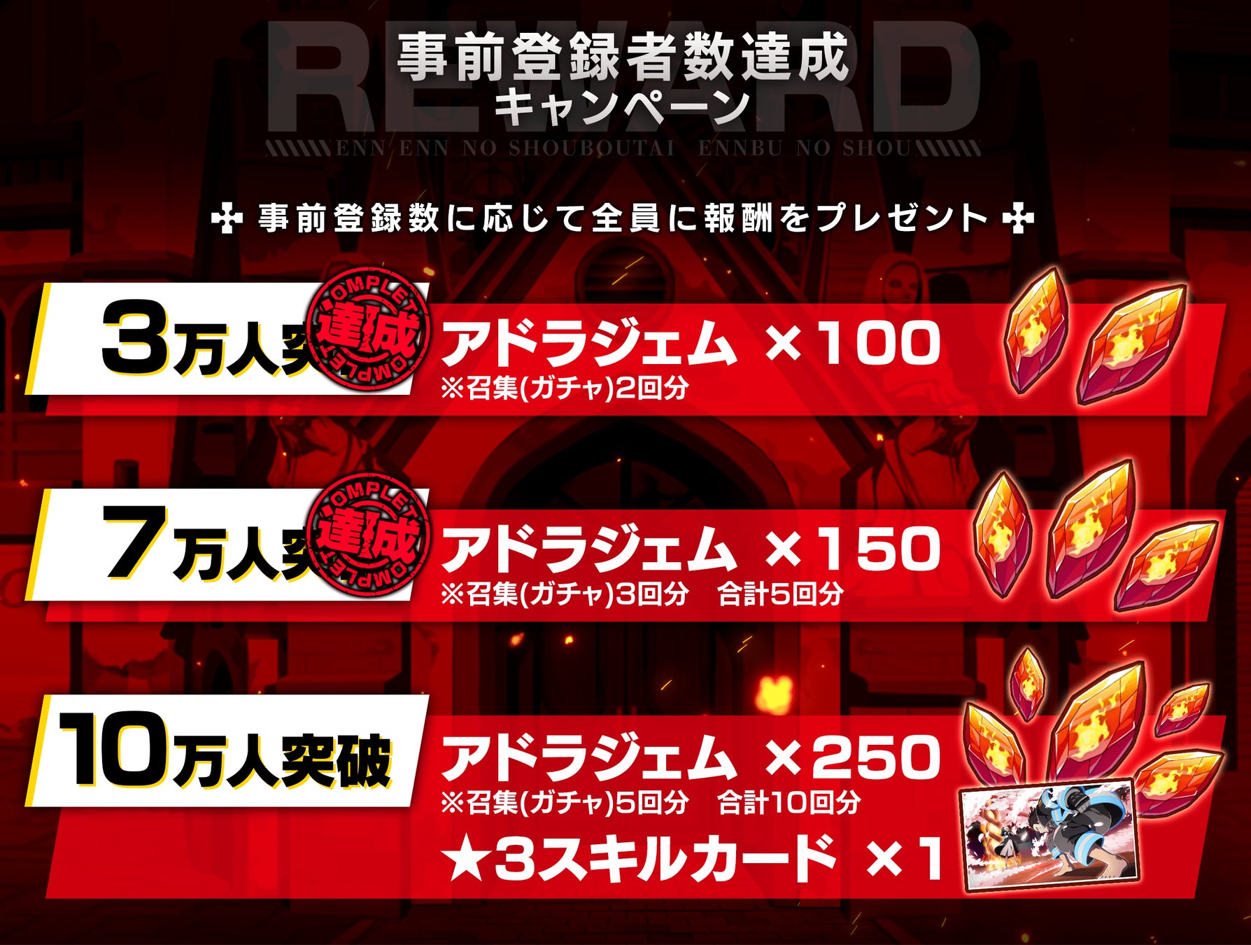 『炎炎ノ消防隊 炎舞ノ章』はスマートフォン andoroid/iosとPCプラットフォームDMMGAMESにて事前登録数7万人突破いたしました。