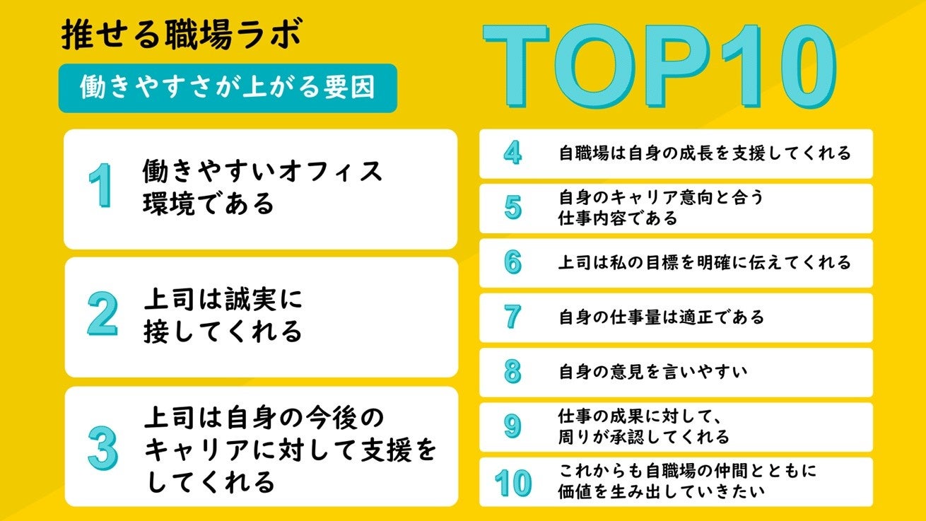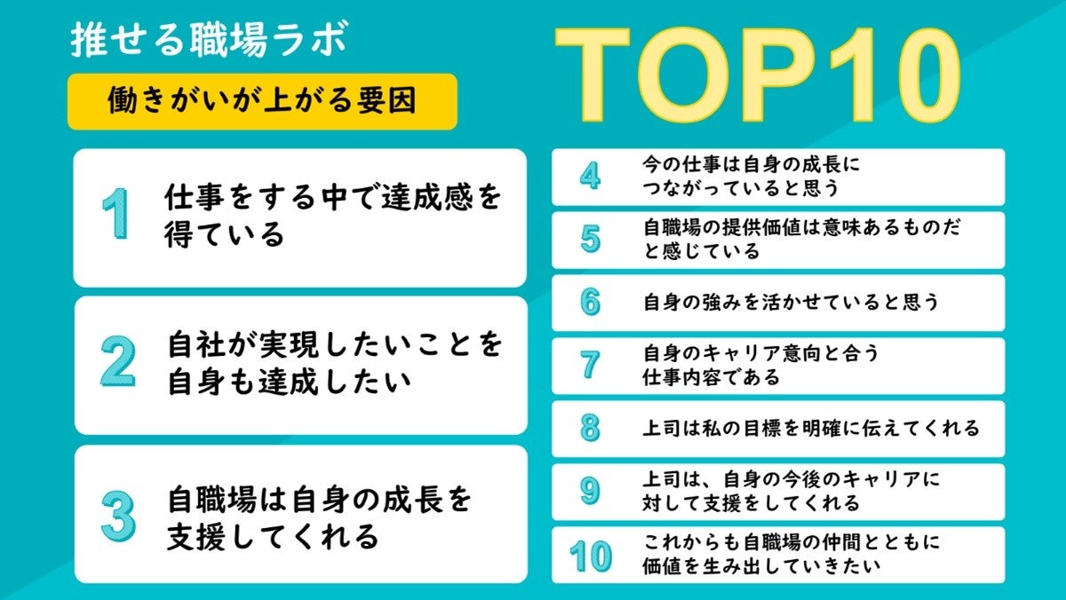 1. 働きがい・働きやすさが上がる要因をランキング形式で公開