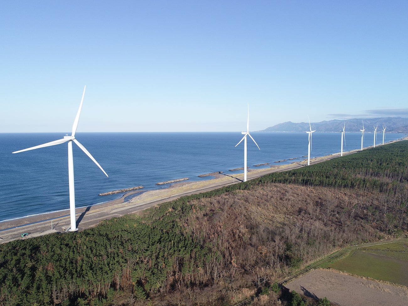 八峰町は、四季を通じて風況に恵まれた町ですが、こうした環境もあり、現時点では、町内に多くの陸上風力発電が立ち並んでいるほか、2029年には洋上風力発電の運転も開始される予定となっております。