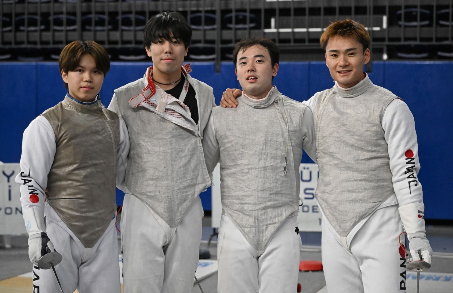 今大会を世界ランク1位で迎えた男子日本チームは、松山恭助(JTB)、敷根崇裕(NEXUS FENCING CLUB)、永野雄大(NEXUS FENCING CLUB)、飯村一輝(慶應義塾大学)のメンバーで今大会に臨みました。