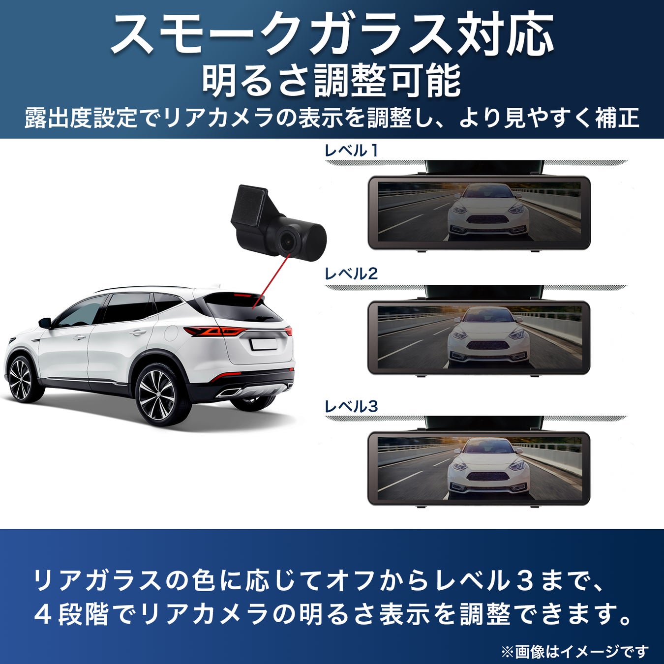 リアガラスの色に応じてオフからレベル3までの、4段階のスモークガラス設定で、リアカメラ映像の明るさを調整可能。