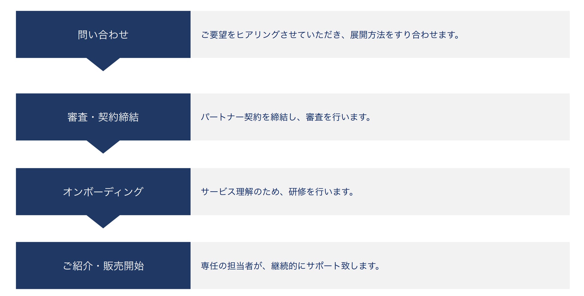 パートナープログラム契約の流れは以下の通りです。