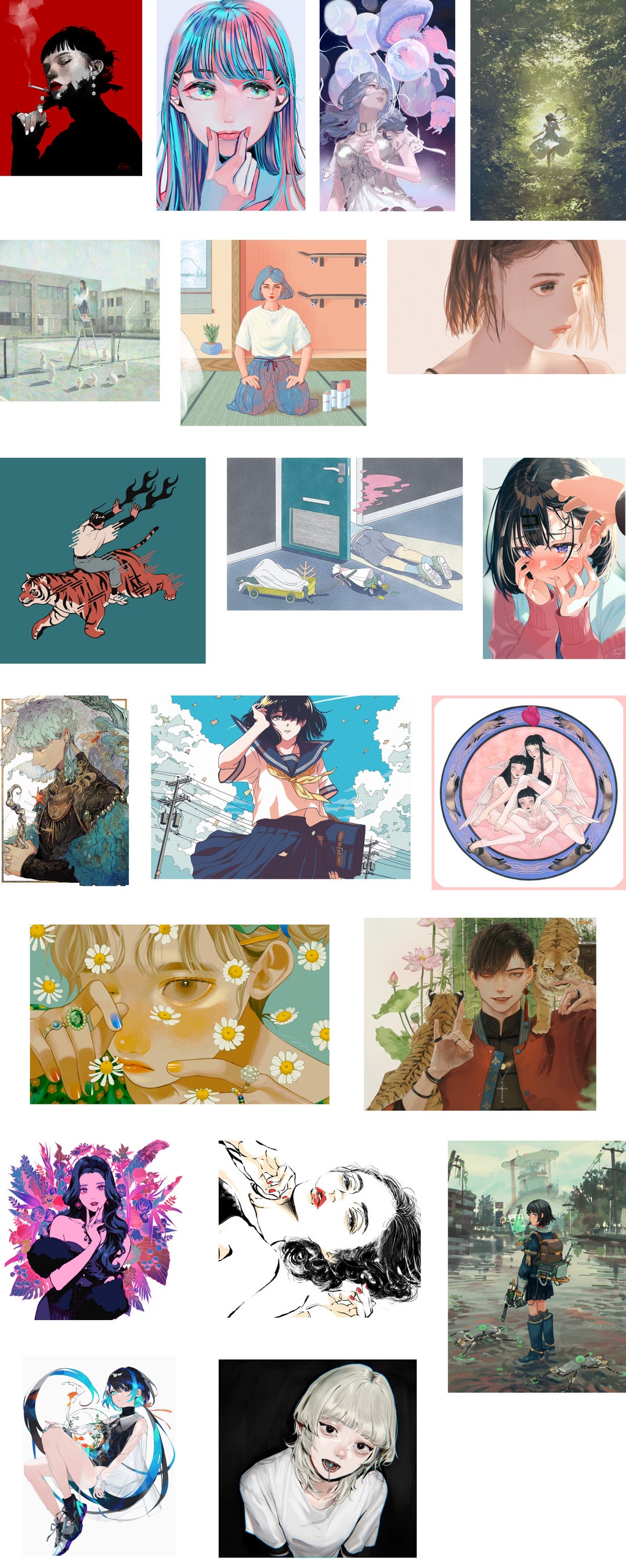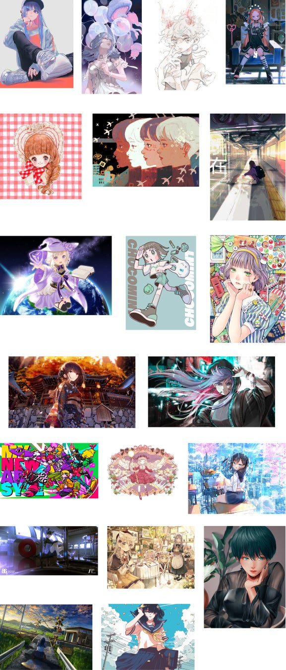 「出現画廊」には総勢350名以上のイラストレーターが作品やプロフィールを掲載するブースを設営します。そのなかから、美術展のコンセプトでもある「新しい才能の出現」に相応しいクリエイター(作品群)に対して、大賞を授与いたします。そして、ノミネートされたのは、以下20名のクリエイターです。