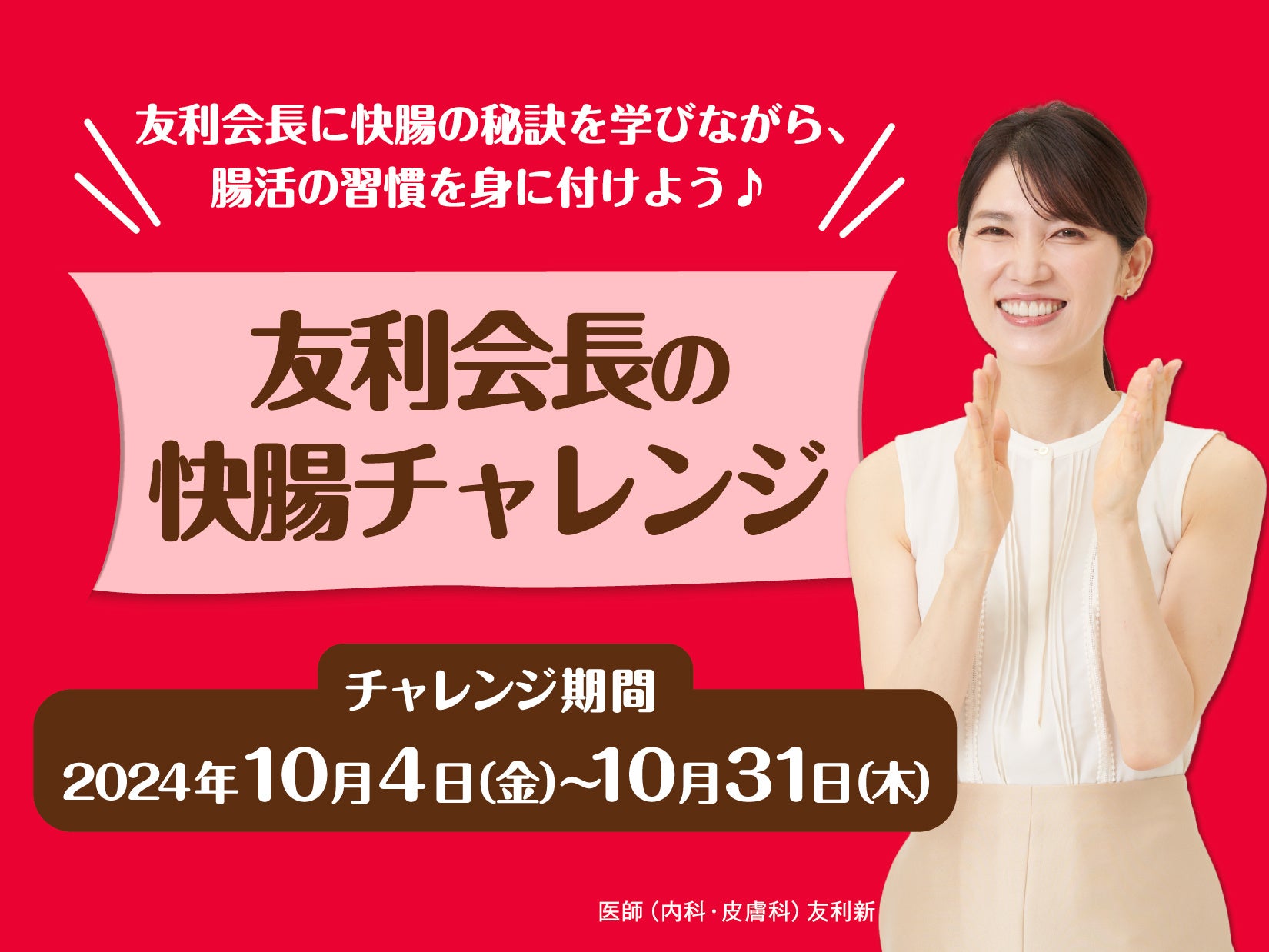 オールブラン好きによる、オールブラン好きのためのオンライン上のコミュニティ「オールブラン腸活部」の会長に、オールブラン愛用歴9年の友利新さんがこのたび就任します。「オールブラン腸活部」内では、友利さんが日頃実践している腸活に挑戦する「友利会長の快腸チャレンジ」を実施。10月4日(金)~10月31日(木)の間、毎週金曜日に友利さんから出題される腸活に関するお題にチャレンジし、「オールブラン腸活部」内で投稿すると、その中から「友利会長大賞」として3つの投稿が選定され、11月11日(月)に発表されます。この機会に是非「オールブラン腸活部」に参加し、友利さんの快腸の秘訣を学びながら、腸活の習慣を身に付けるのはいかがでしょうか。