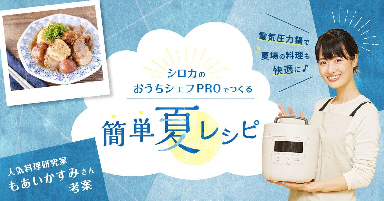 この度、仕事や家事で忙しく働く人のための簡単時短レシピ“働楽ごはん”で人気の料理研究家・もあいかすみさん考案の、おうちシェフPROで作る夏に楽しみたいレシピを公開。本日7月15日より、シロカ公式サイトおよびシロカ公式Instagramにて順次公開します。