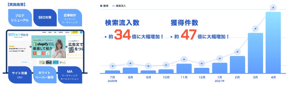 ただ上位表示させるのではなく、成果につながるキーワードでの上位表示や獲得率の改善を目的としたUI/UX改善も実施することで、お問い合わせが飛躍的に増加いたしました。