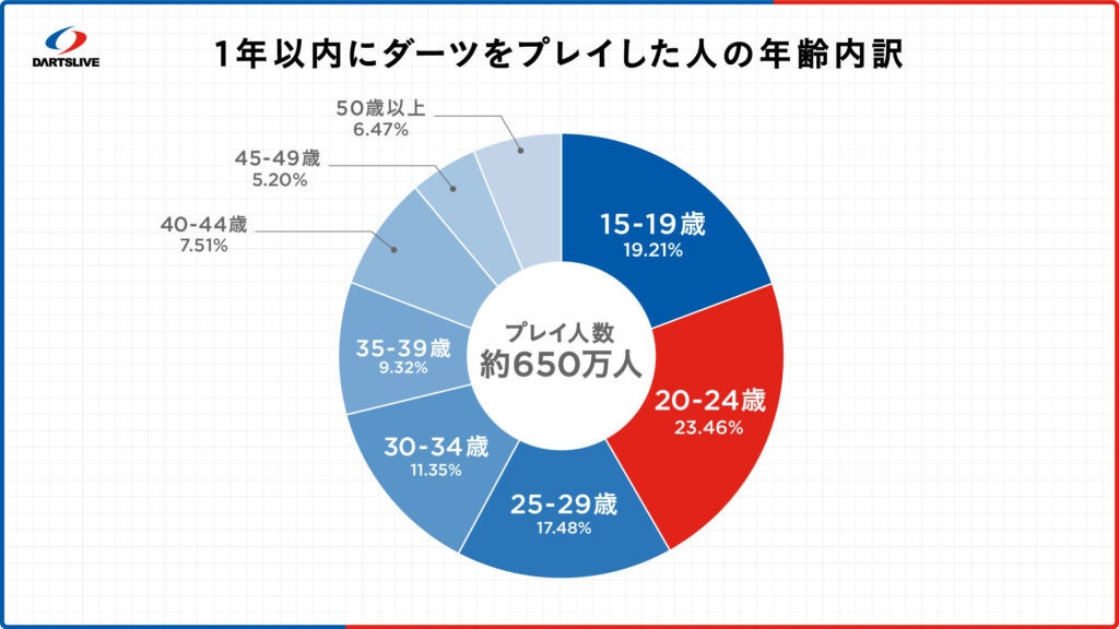 さらにダーツをプレイした人の年齢内訳を見てみると、10代と20代前半の層が全体の過半数に迫る42.67%を占めるという結果に。若者に支持されている様子から、ダーツ市場は今後ますます盛り上がっていくことが予想されています。