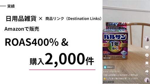 特に、TikTokの新機能「Destination Links(商品リンク)※」を活用することで、動画視聴から購買への導線を強化。信頼感のある暮らし系インフルエンサーを起用したことで、広告らしさを抑えた自然な導入と商品訴求を実現しました。