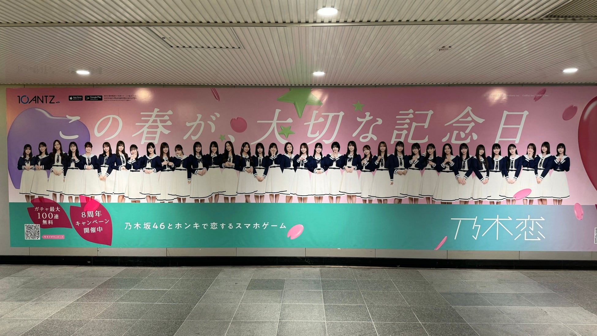乃木坂46、櫻坂46、日向坂46公式ゲームアプリ『乃木恋』『サクコイ』『ひなこい』 メンバー総勢91人が約20メートルにずらりと並ぶ!巨大ポスターが渋谷駅に期間限定で登場!
