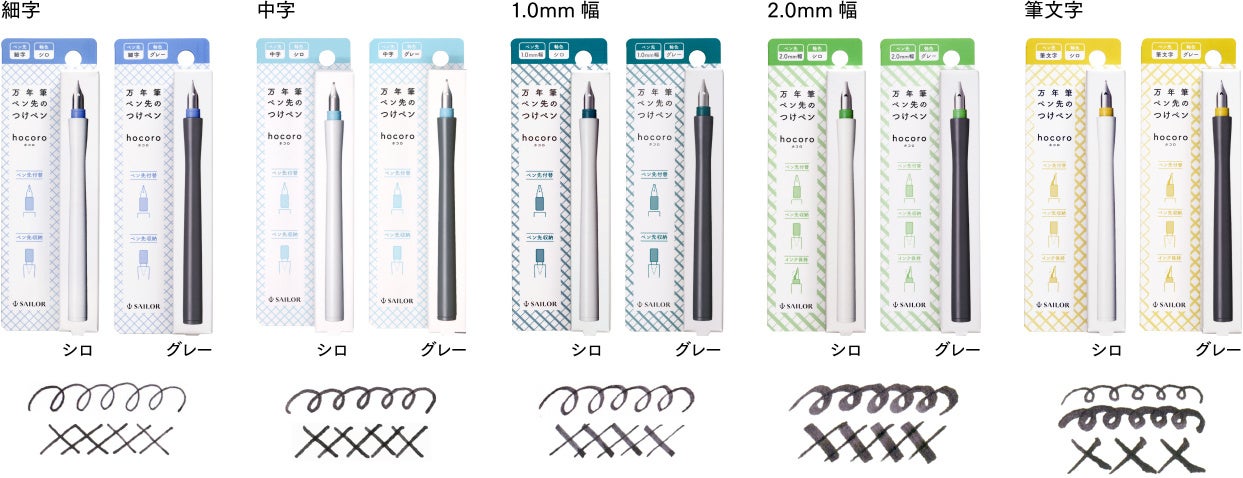 【万年筆ペン先のつけペン hocoro ラインアップ】 5種類の字幅