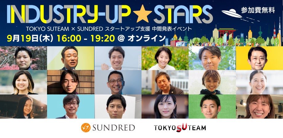 100個の新産業の共創を目指す「新産業のエコシステムビルダー」SUNDRED株式会社(所在地:東京都渋谷区、代表取締役 CEO 兼 GM:留目真伸、以下:SUNDRED)は、東京都が行うTOKYO SUTEAM事業と連動し、東京・日本に新産業共創エコシステムを本格的に実装することを目的に、スタートアップ×新産業共創のための交流の場「Industry-Up Stars 〜 TOKYO SUTEAM × SUNDRED スタートアップ支援 中間発表イベント」を9月19日(木)にオンライン開催いたします。
