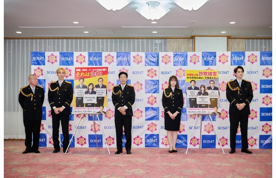 この度、山崎怜奈氏と町田啓太氏が、警察庁生活安全局長から特別防犯支援官を委嘱され、新たにSOS47メンバーに加わりました。また、この日出席した松本利夫特別防犯支援官、橘慶太支援官、吉原朝馬支援官についても警察庁生活安全局長から委嘱状を受け取り、引き続き特殊詐欺被害防止のために特別防犯支援官を継続して務めていくことになりました。
