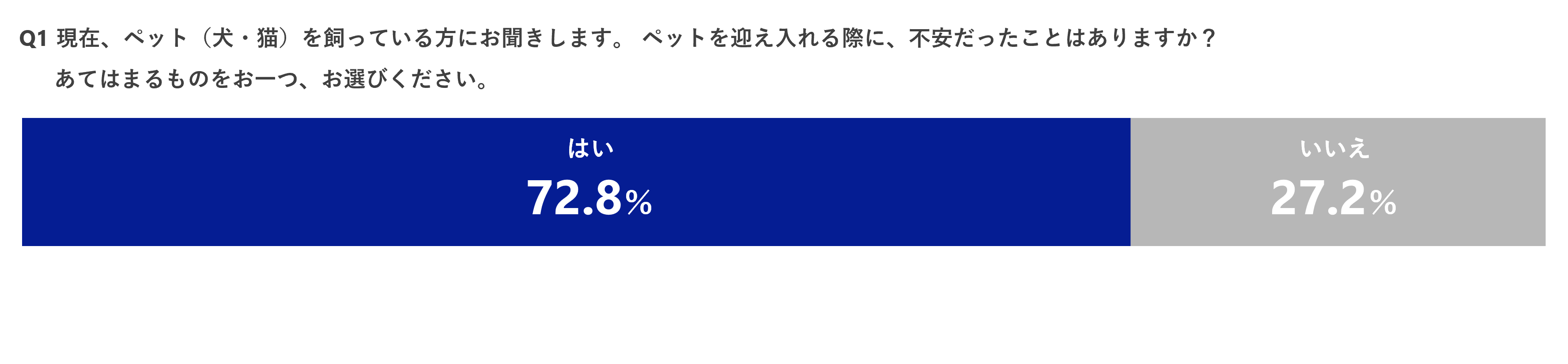 1.ペット(犬・猫)を迎え入れる際に、不安があったと答えた方は72.8%。