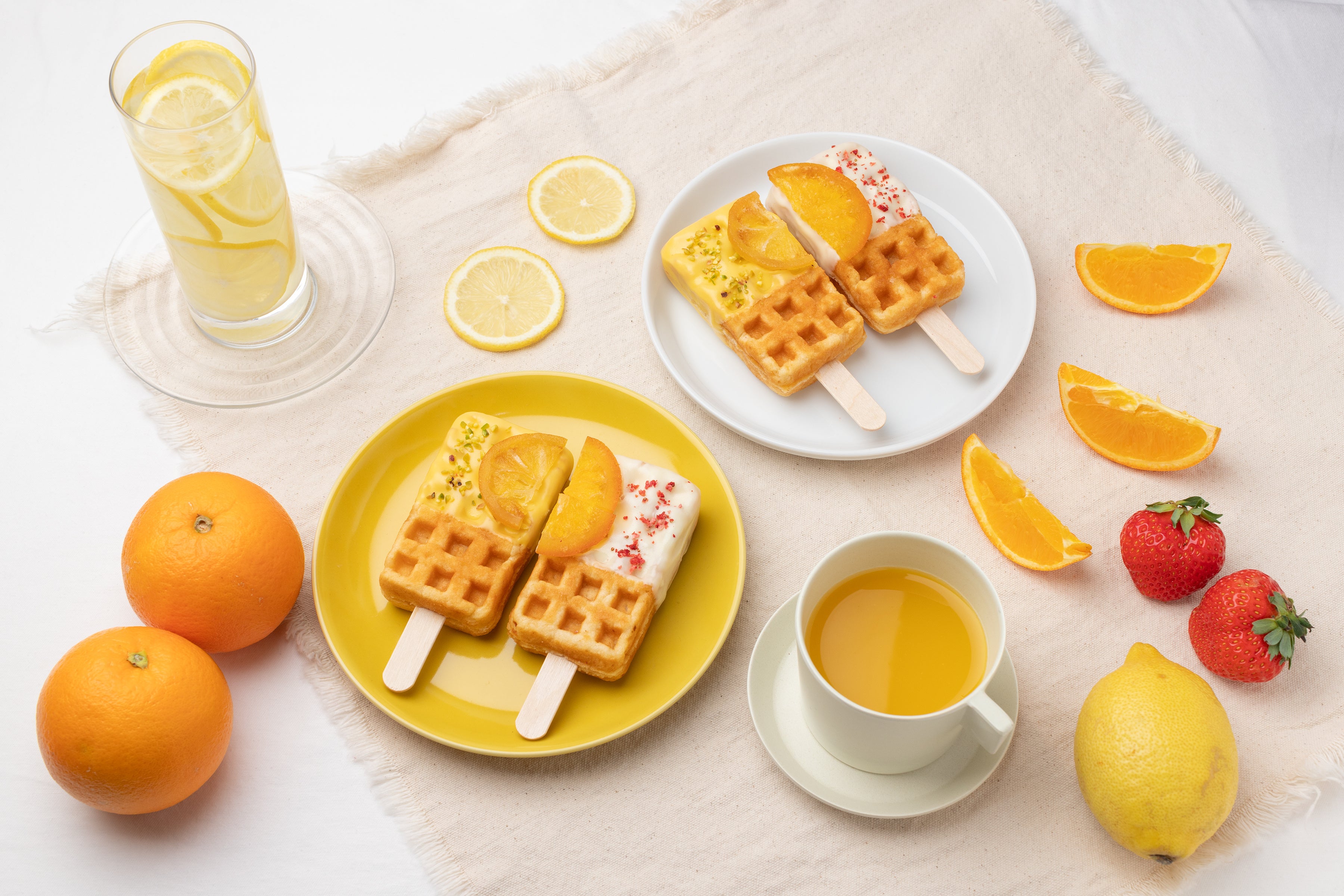 ひんやり冷たいワッフル第2弾!"朝と夜"で、食べ分ける?レモンとオレンジを使用したフルーティーなワッフルが夏季限定で新登場|6月に販売開始した大人のリッチチョコミントとのアソートBOXも登場。