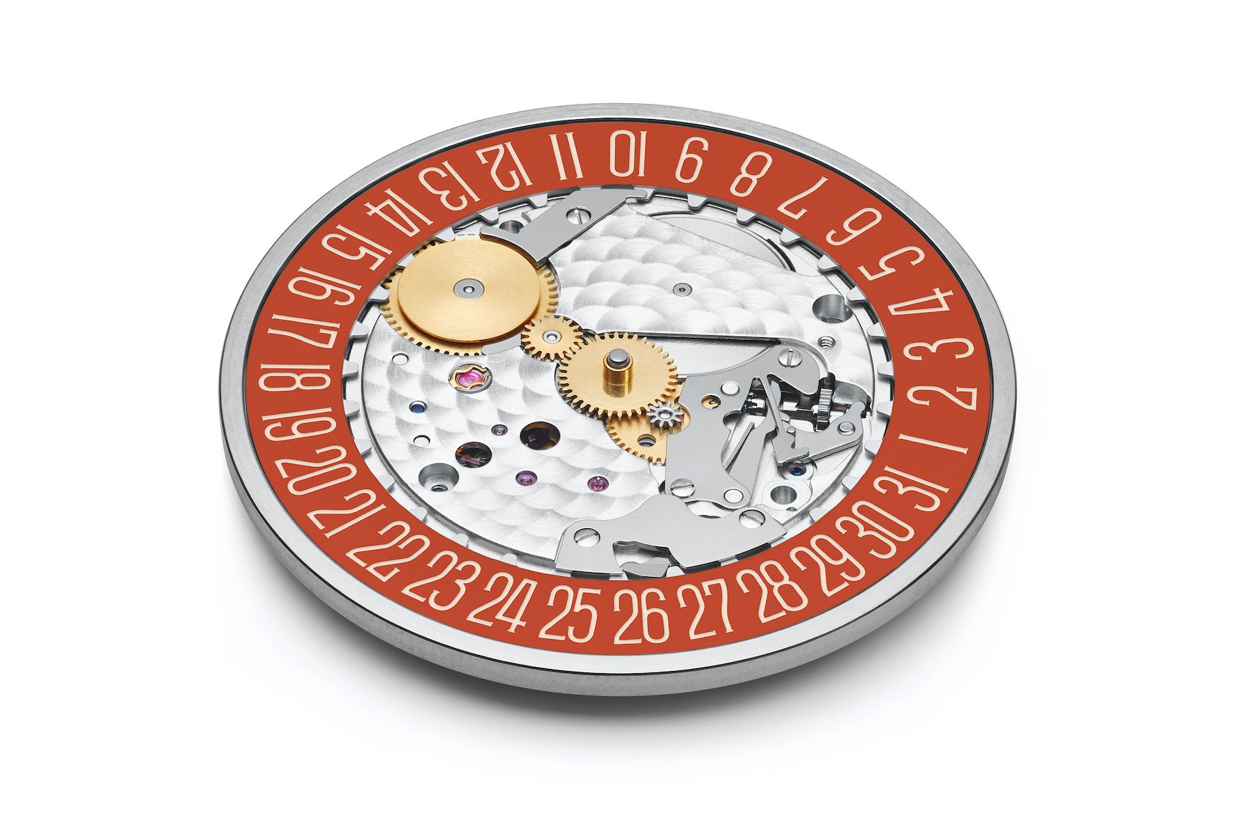 「タンジェント 38 デイト31 Colors」の内部では、ノモススウィングシステを搭載した、手作業で作られた日付ムーブメントDUW 4101が時を刻みます。このムーブメントは日付リングがムーブメントの周囲に配置され、大きな日付窓がダイヤルの端にあるのが特徴です。このスペシャルエディションでは、クロノメーター規格値で調整されています。