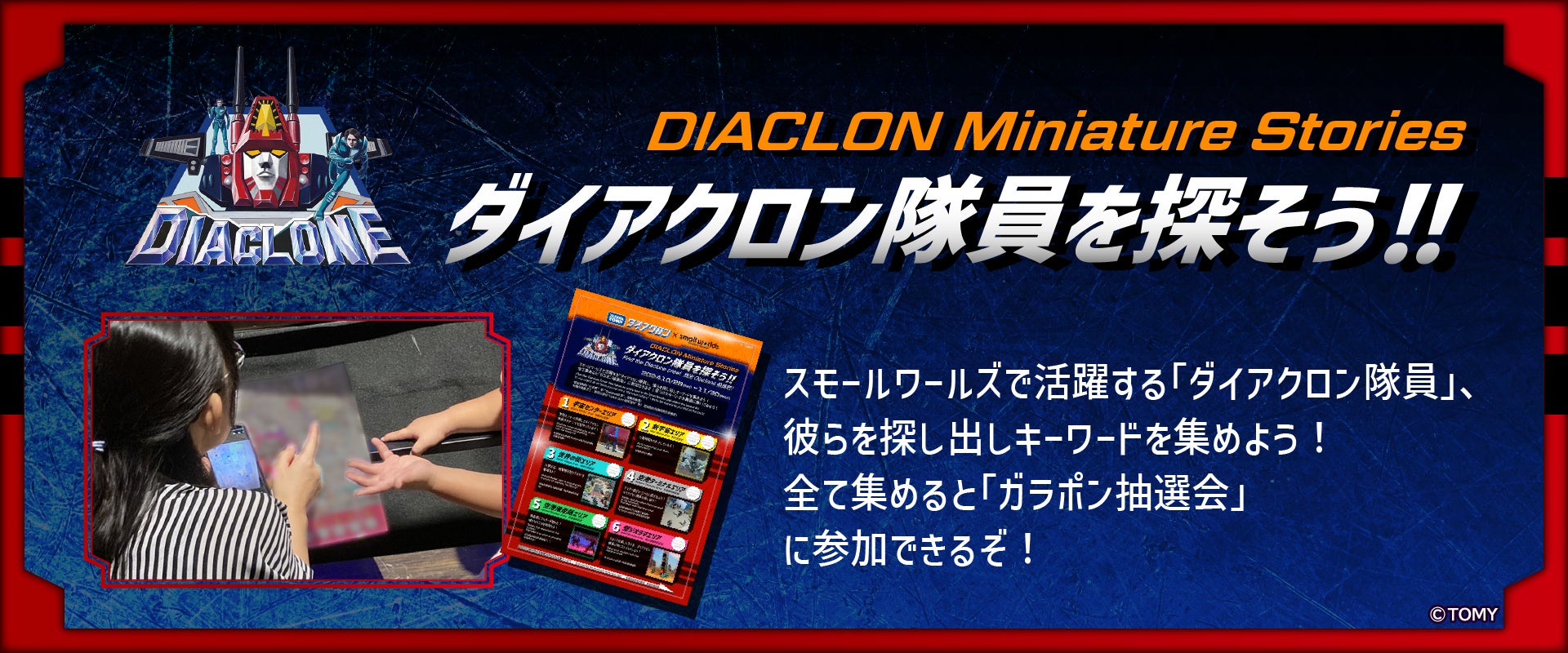 1980年、「ダイアクロン」は株式会社タカラトミーからオリジナルキャラクターSF玩具シリーズとして誕生。シリーズ名の“ダイアクロン” は“<ダイヤ>のように固い友情と団結を持ち、<サイクロン> のように力強い仲間たち”という意味を込めて造られた名称である。発売当初は、1/60スケール(約3cm)のフィギュア“ダイアクロン隊員”とダイアクロン隊員が乗り込む同スケールのロボット・基地・ビークル等のアイテム群を、1982年からは統一スケールをなくし、リアルな実車がロボットに変形する「カーロボット」等のリアル&ロボットシリーズとして展開しています。変形合体ロボット遊び、フィギュア遊び、ジオラマ的な基地遊び等といった人気の要素が詰め込まれている「ダイアクロン」は、後の変形ロボットキャラクター「トランスフォーマー」の中核を成すアイテムを数多く生み出したシリーズとしても知られています。2016年に大人向け玩具シリーズとして再起動、1/60スケールで統一されたフィギュアやメカアイテムをコアとして、ユーザー独自のワールドを自由に構築していくといった、大人が本気で遊べる、大人の為のイマジネーションTOYとして展開中です。