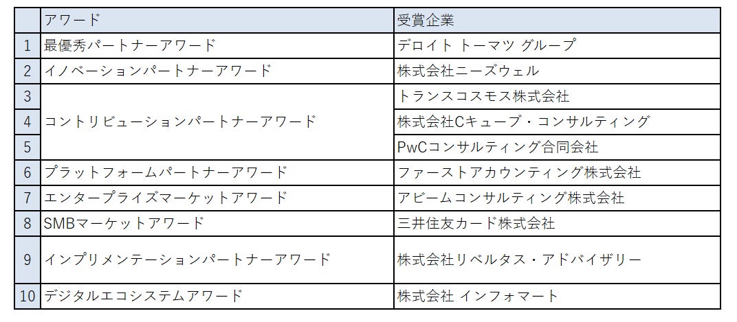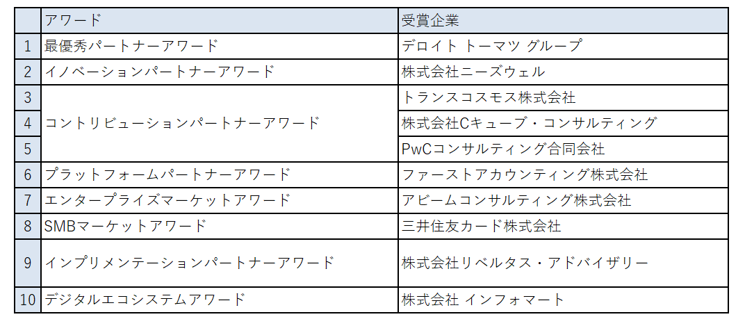各賞の受賞パートナー企業は以下の通りです。