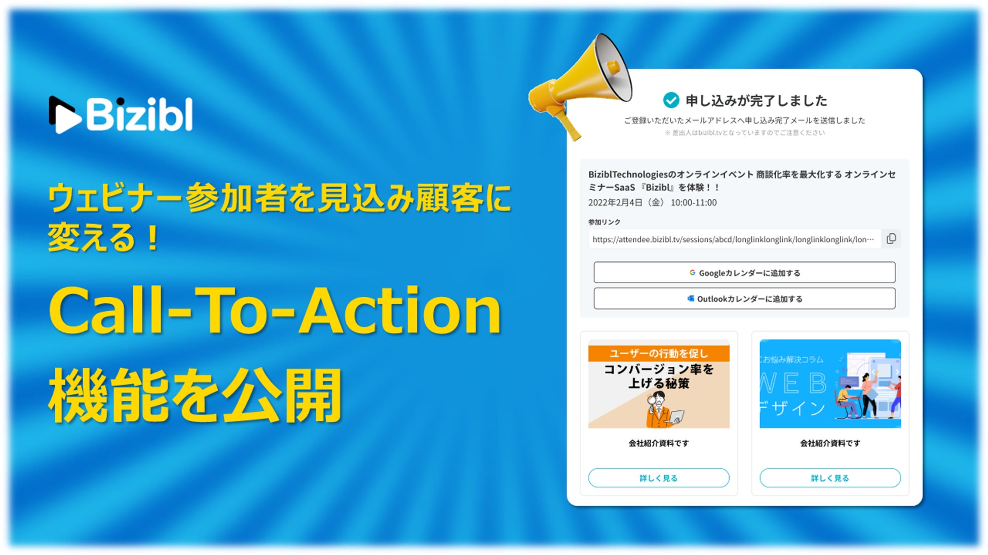 ウェビナーマーケティングSaaS「Bizibl」が、「Call-To-Action機能」を公開