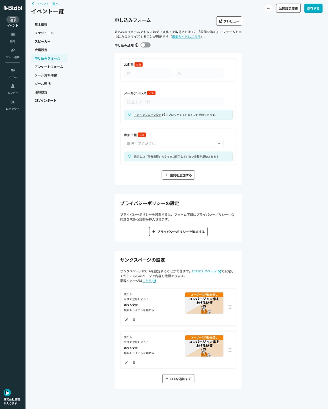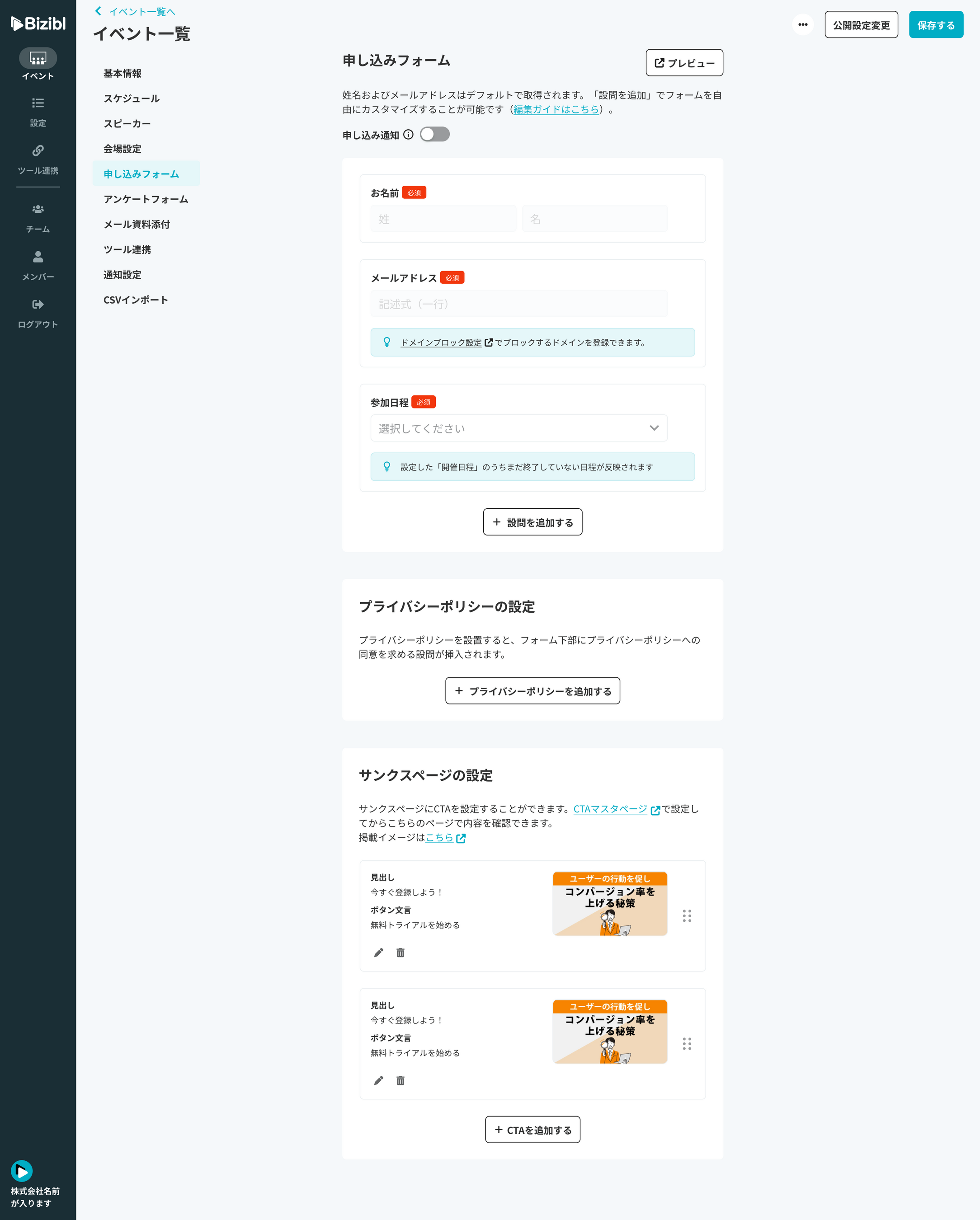 イベント編集ページ > 申し込みフォーム(CTA設定後)
